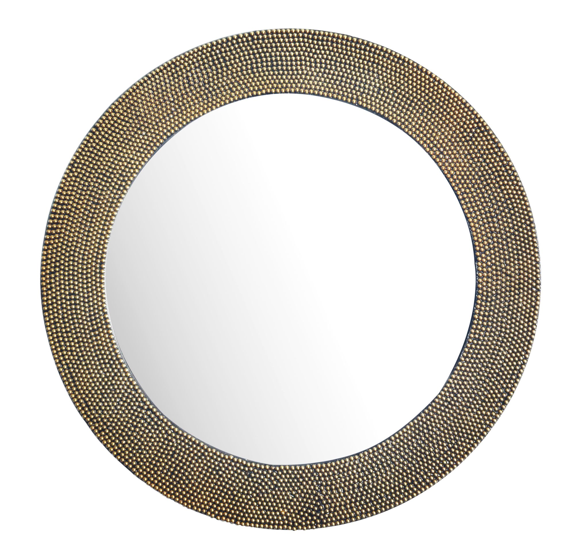 Kulaté Nástěnné Zrcadlo 60 cm Zlatý Kov Hliník Rámeček s Perličkami Design | Moderní Dekor