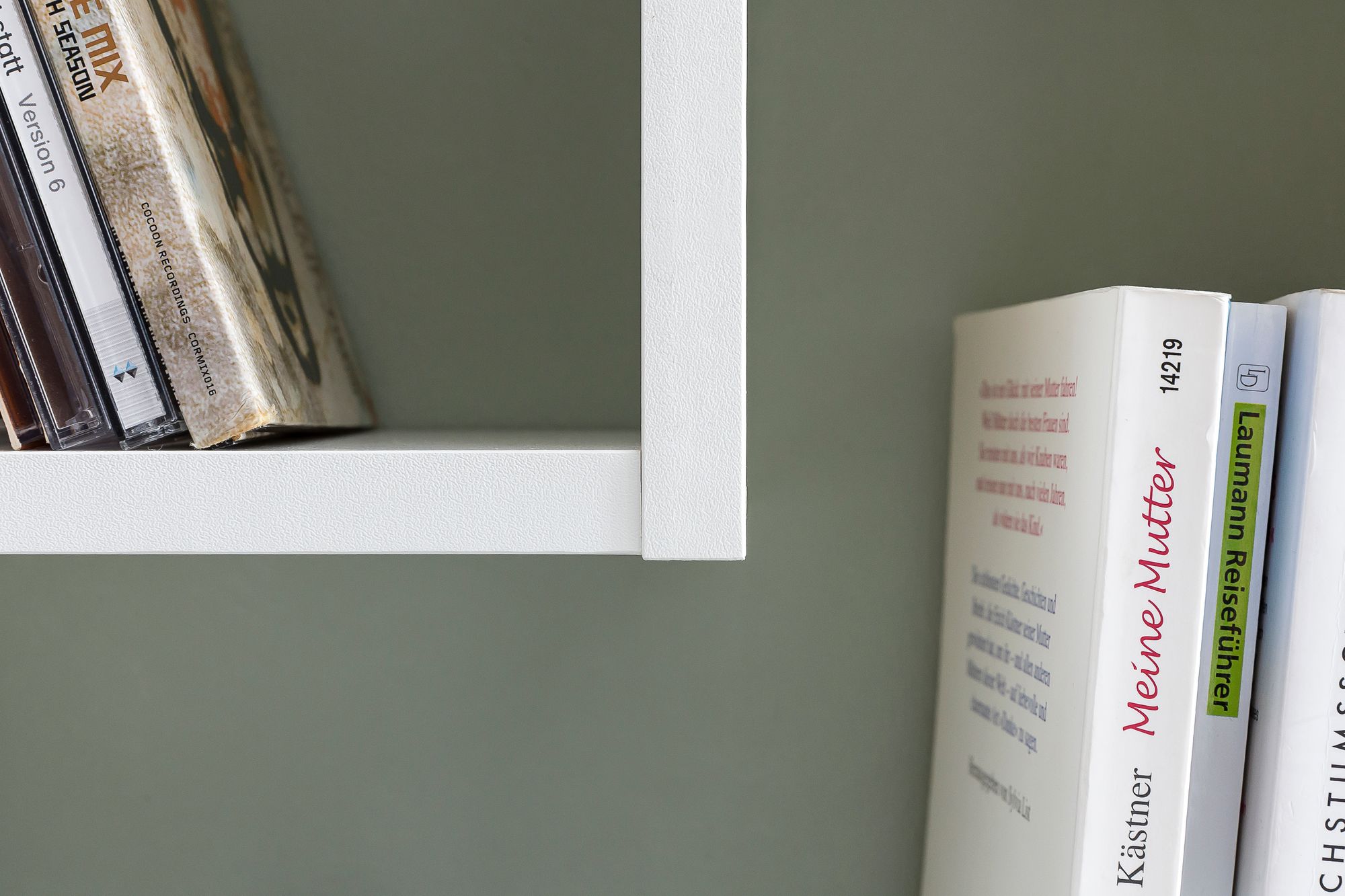 Bílá nástěnná police spojující moderní styl s praktičností. Vyrobena z 16mm dřevotřísky s bílým fóliovým povrchem, obsahuje pět přihrádek různých velikostí na knihy, dekorace a doplňky.