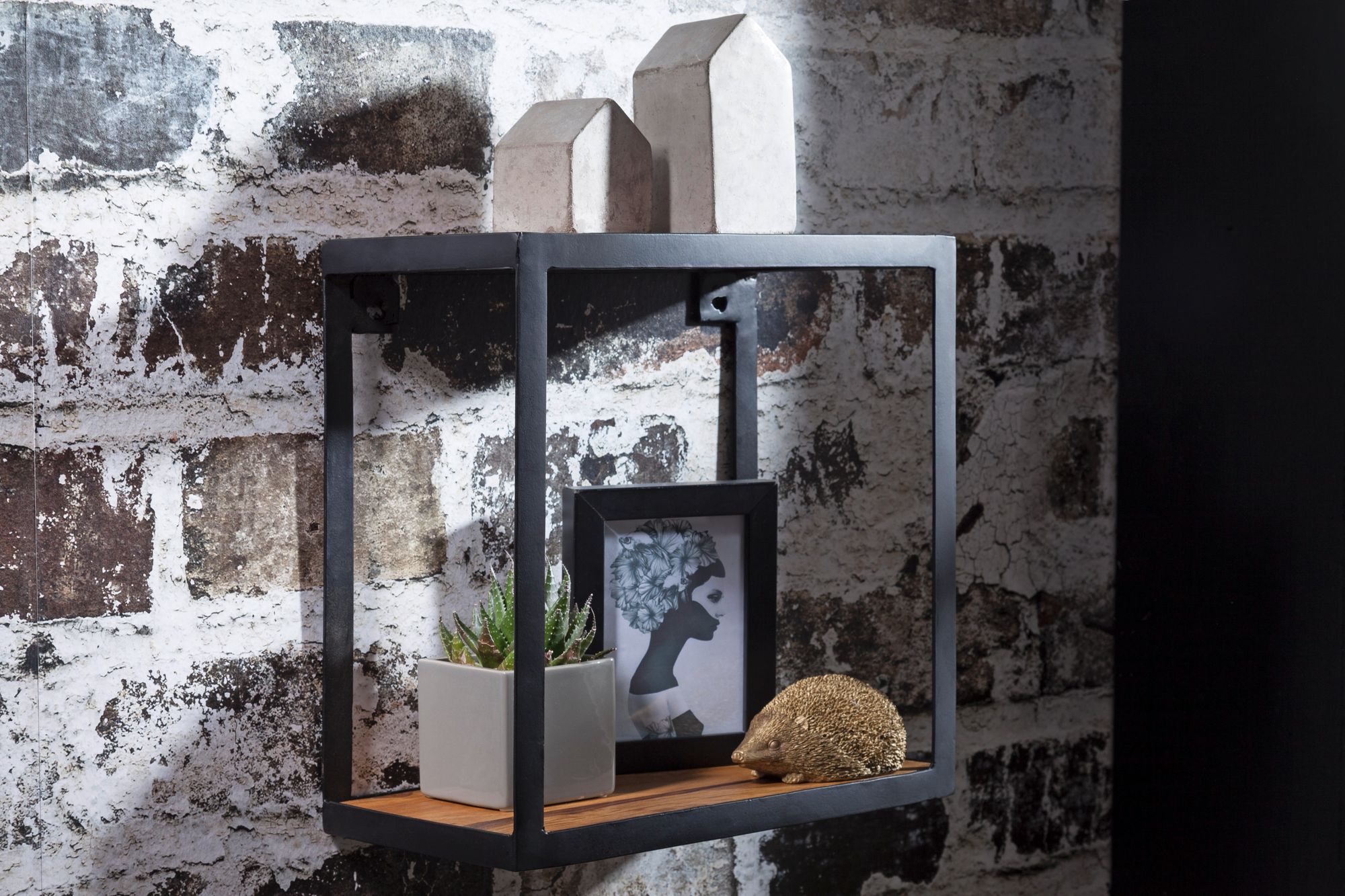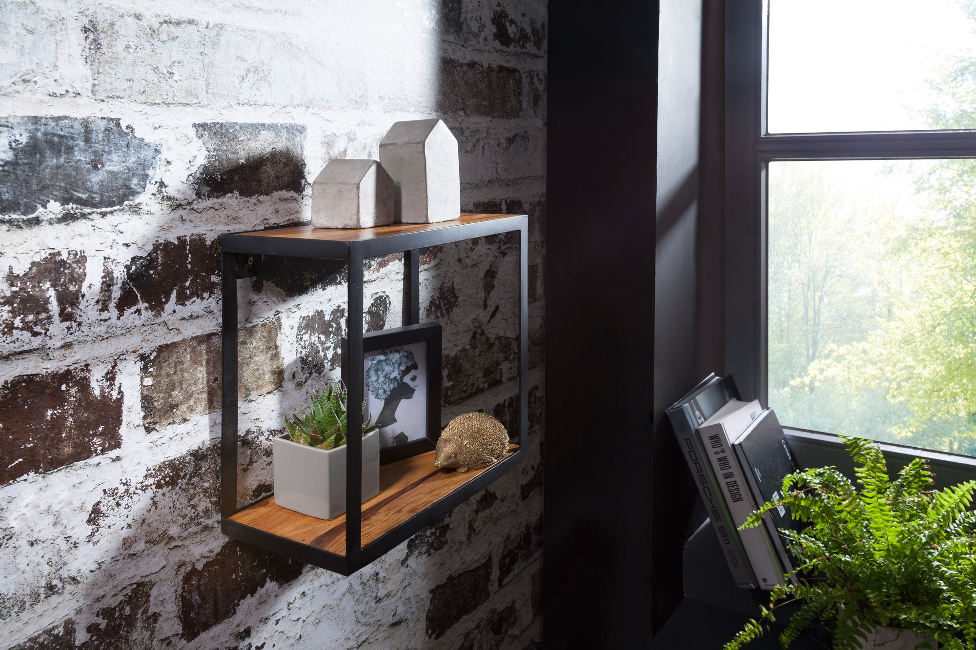 Informace o výrobku "Nástěnná police PURI | Masivní dřevo Sheesham a černý kov | 35x18x35 cm"