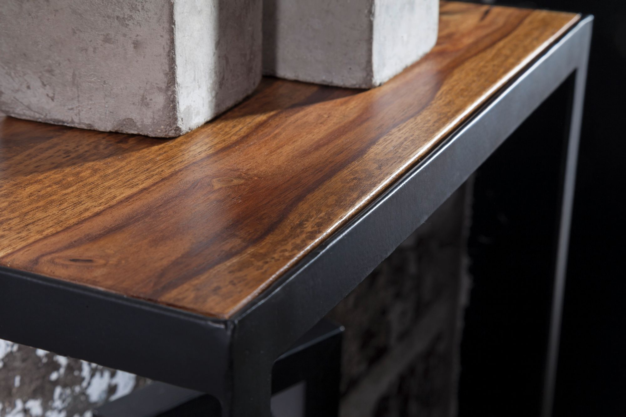 - Materiál: masivní dřevěná police Sheesham, černý kovový rám