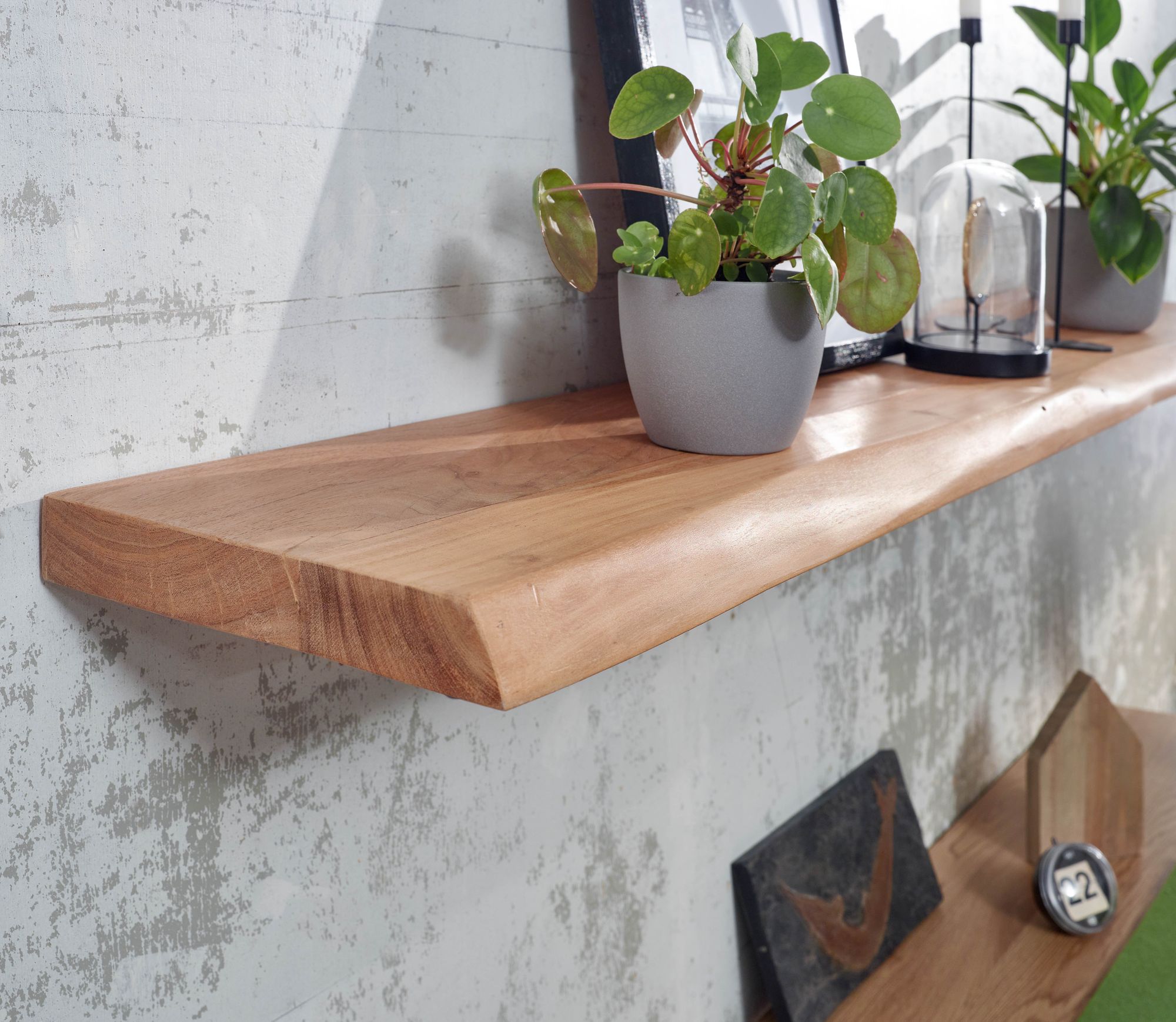 Informace o výrobku "Nástěnná police z masivního akátového dřeva s přírodní hranou | Světle hnědá | 160 cm"