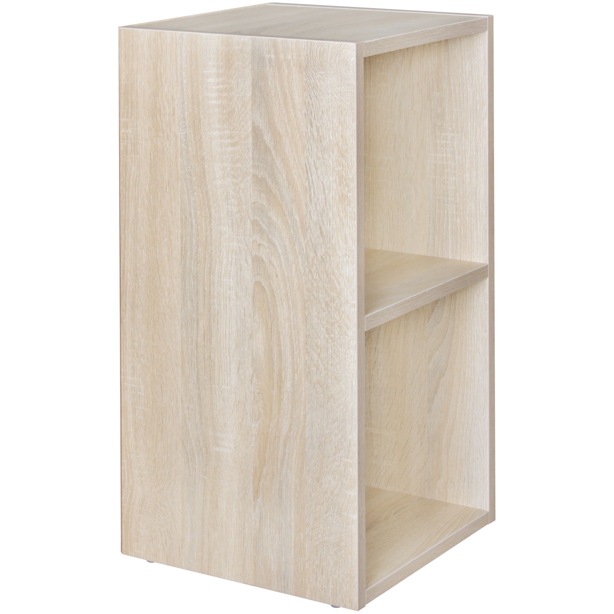 Tento stojací regál Sonoma z dřevotřískové desky s melaminovým povrchem kombinuje moderní a funkční design s dvěma velkými policemi, které poskytují dostatek úložného prostoru pro knihy, dekorace nebo doplňky. Jeho kompaktní tvar je ideální pro malé prostory, jako jsou niky nebo domácí kanceláře.