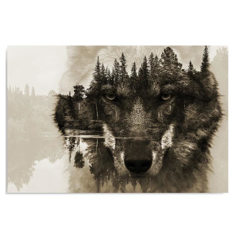 Canvas print, Wolf in front of a forest - brown