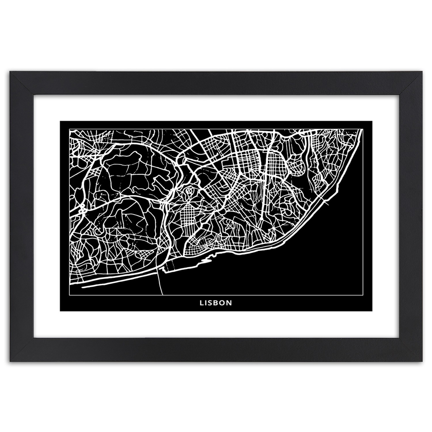 Informace o výrobku "Černobílý rám s potištěným plátnem vyrobený z mdf sestávající z lisabonské mapy"