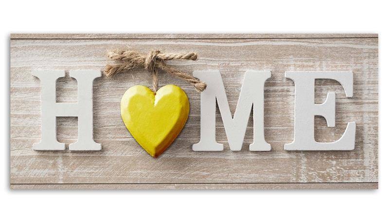 - Rám s potištěným plátnem. Vzor: domov se žlutým srdcem na světlém dřevě.