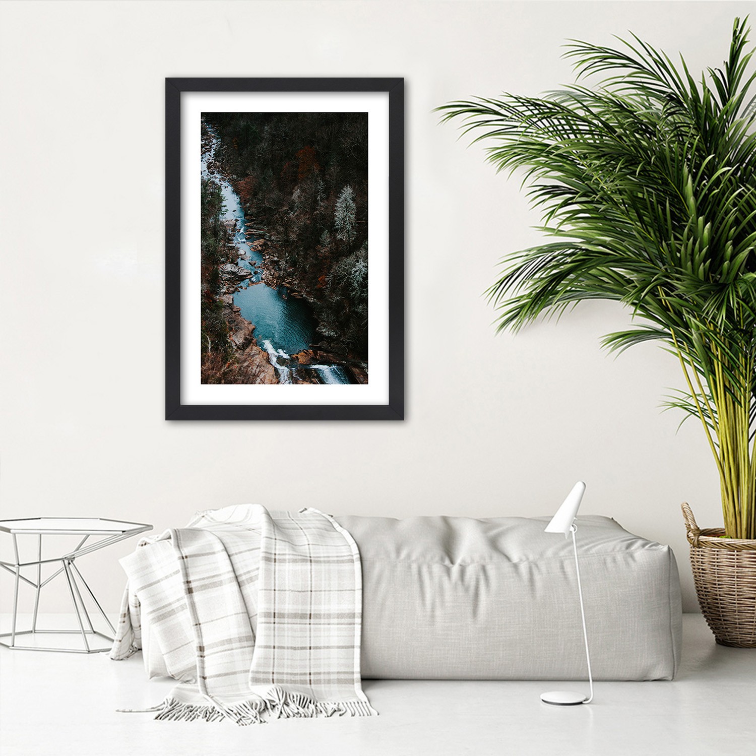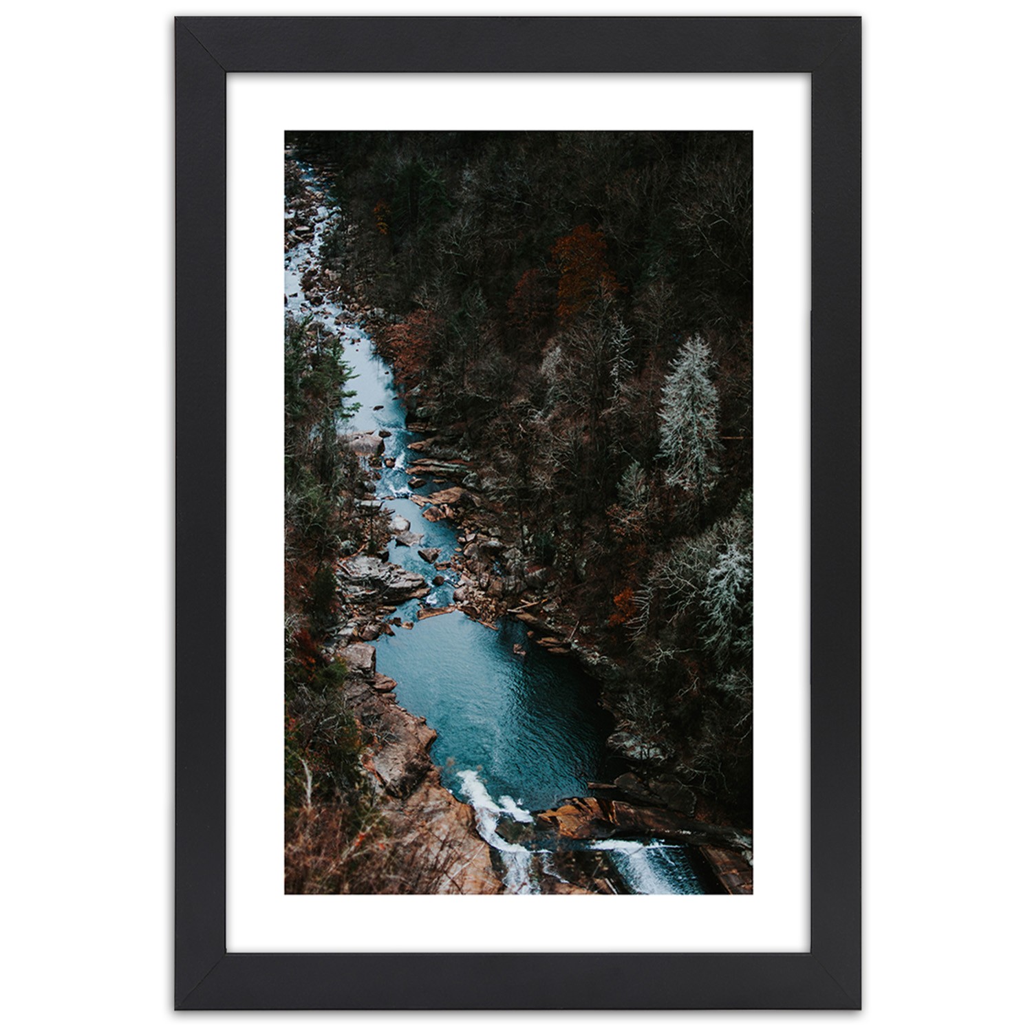 Picture in black frame, River in the forest