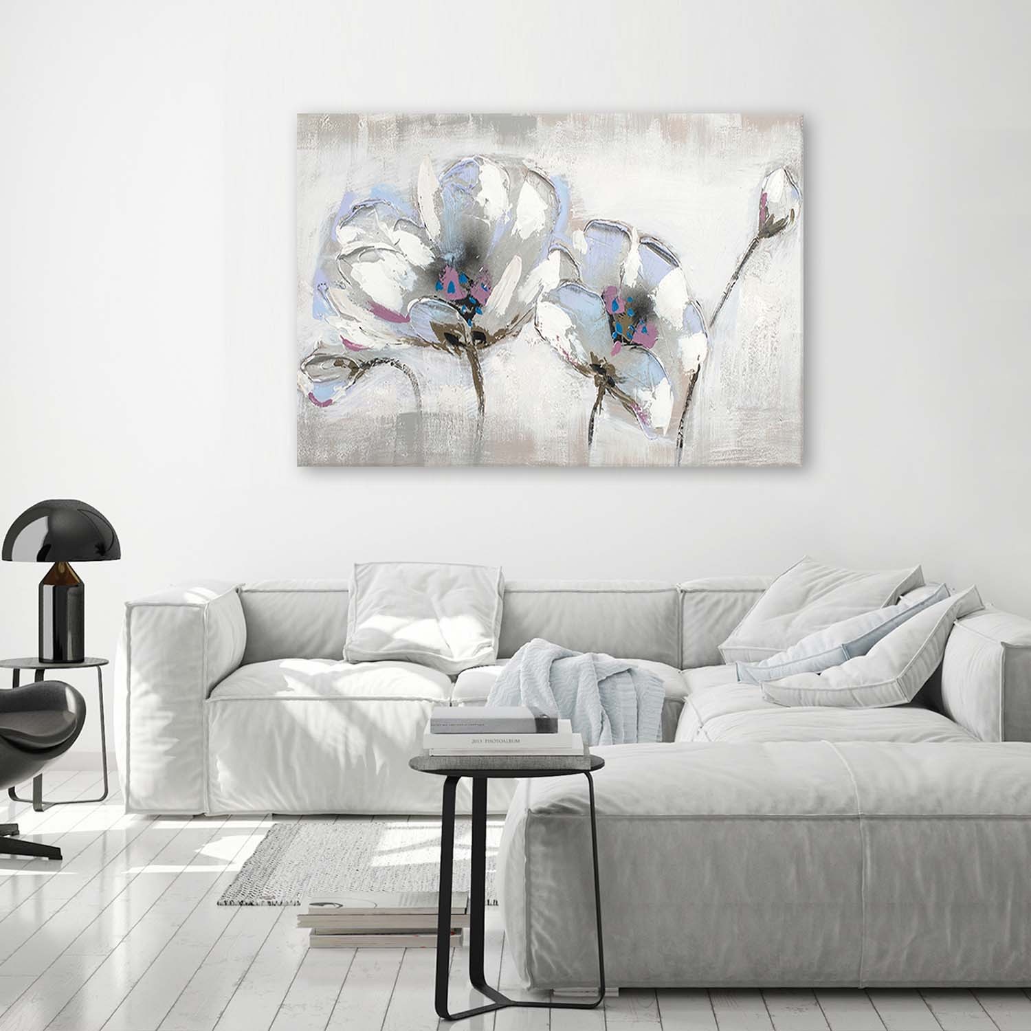 - Rám tištěný na plátně s obrázkem bíle malovaných květin.