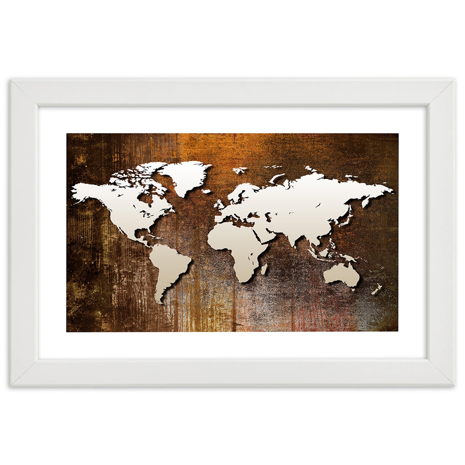 Informace o výrobku "Rám tištěný na saténový papír s dřevěným rámem mapa světa na dřevě"