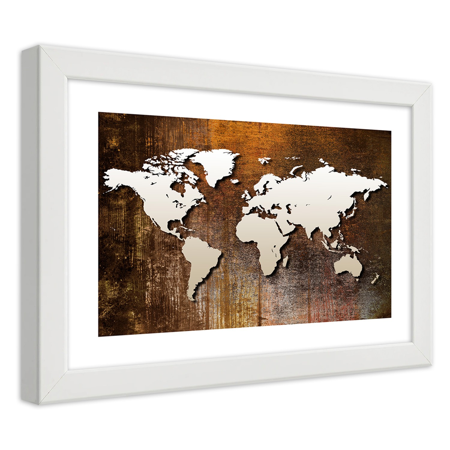 Rám tištěný na saténový papír s dřevěným rámem mapa světa na dřevě