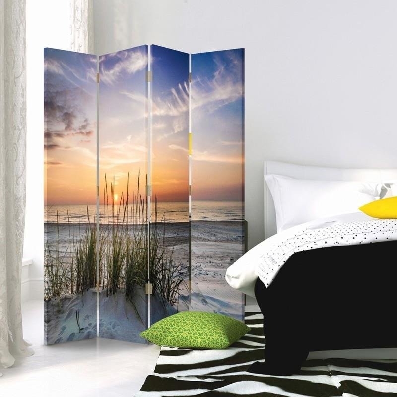 Oboustranná zástěna 145 cm z mdf plněná korkem a plátnem s plážovým obrázkem