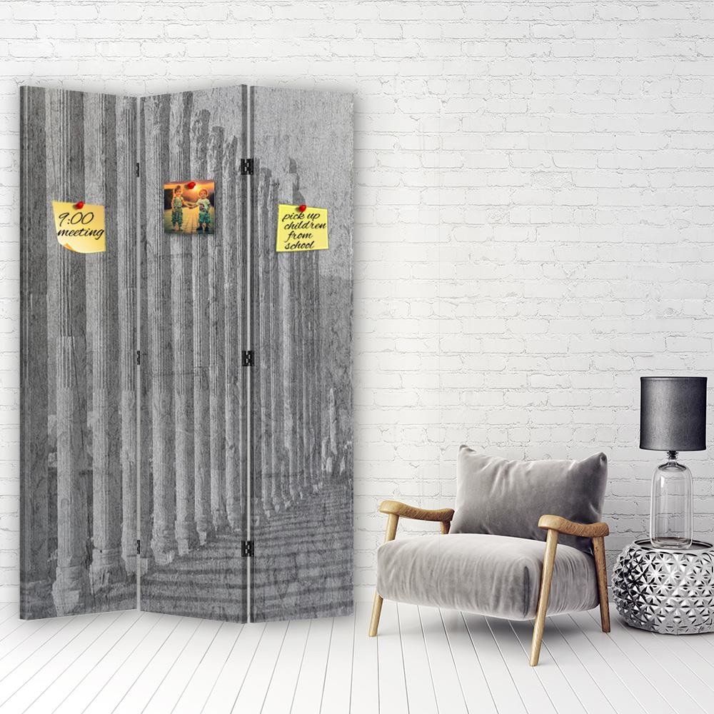 Oboustranný paraván 110 cm z mdf plněný korkem a plátnem s vyobrazením římských sloupů