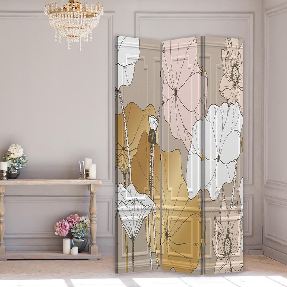 Sítotisk děliče pokojů na plátně s mdf rámem vintage květiny