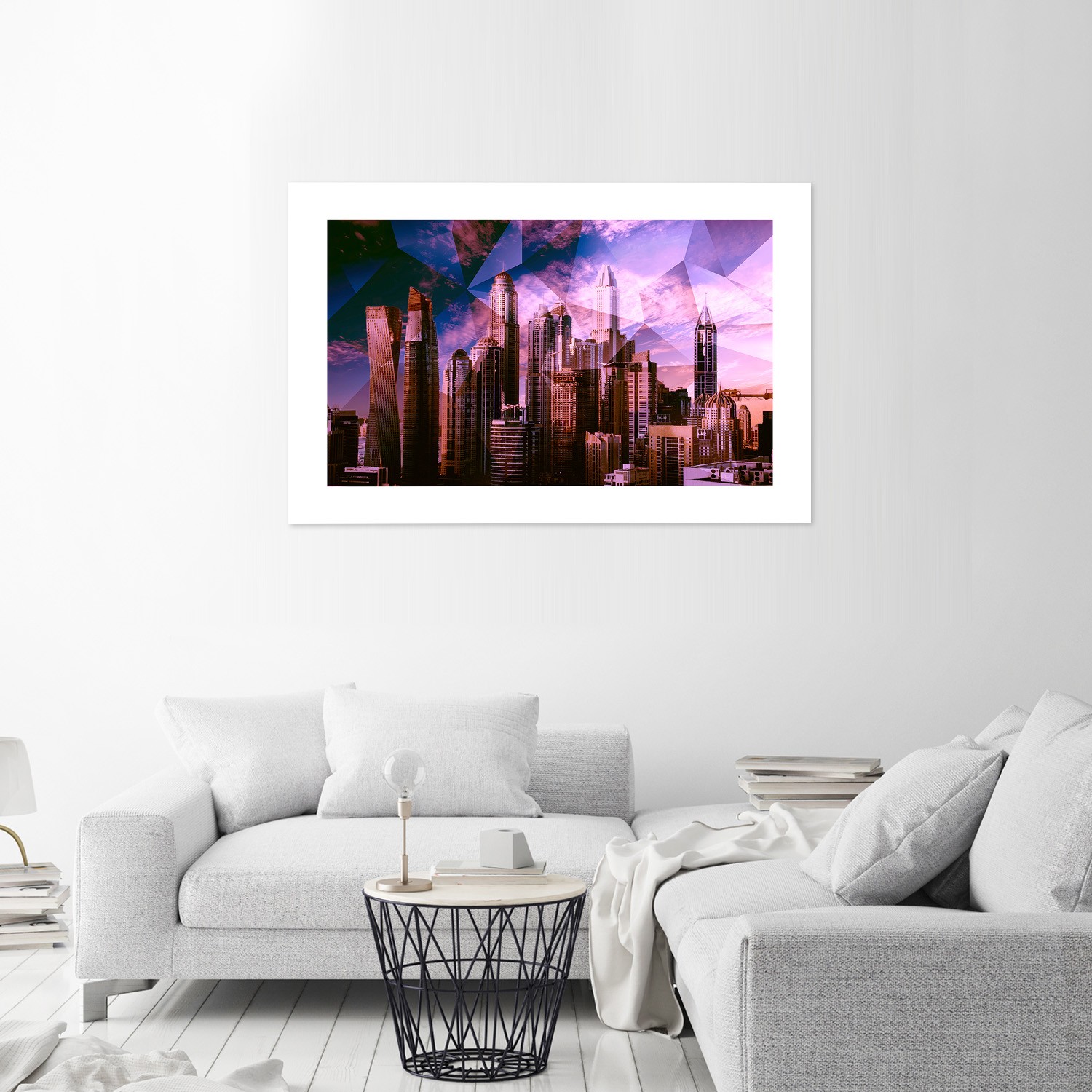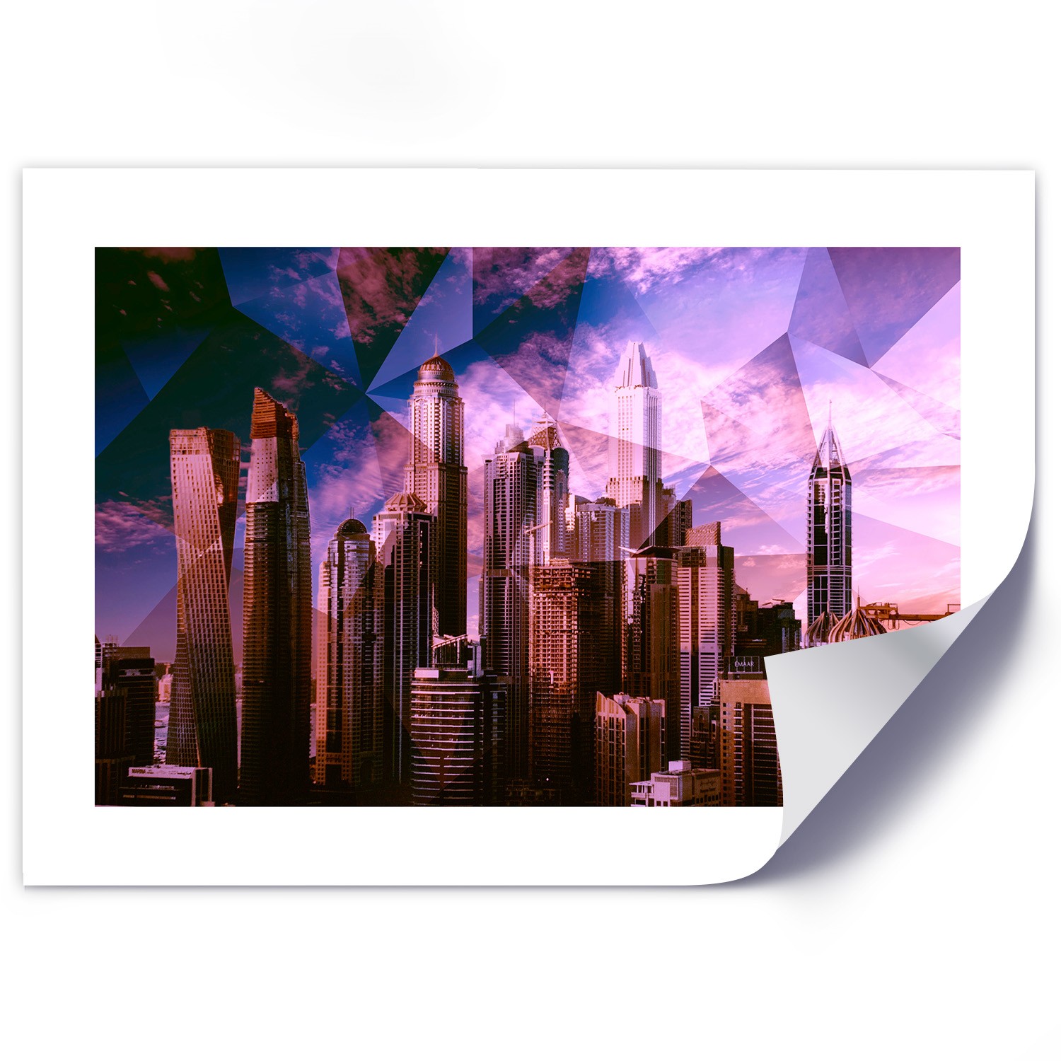 Informace o výrobku "Nástěnný plakát s dekorativním obrazem geometrického města ve fialových tónech"
