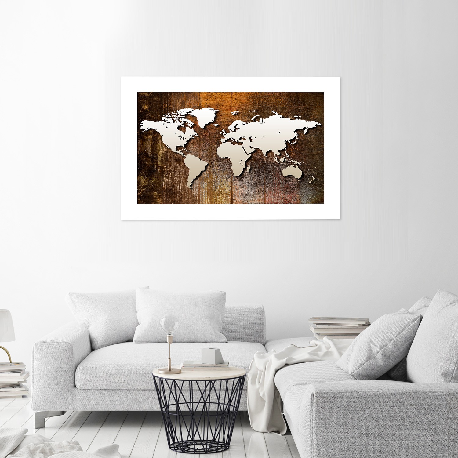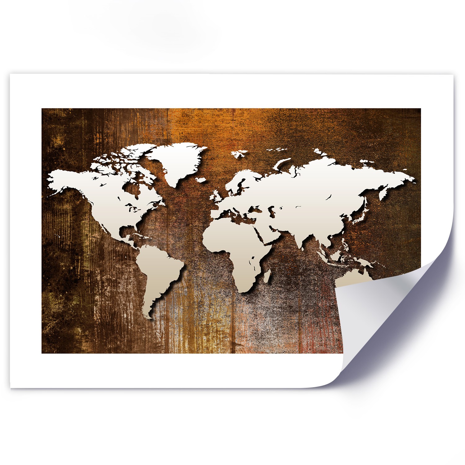 Informace o výrobku "Papírový nástěnný plakát s obrázkem bílé mapy světa na dřevěné pozadí"
