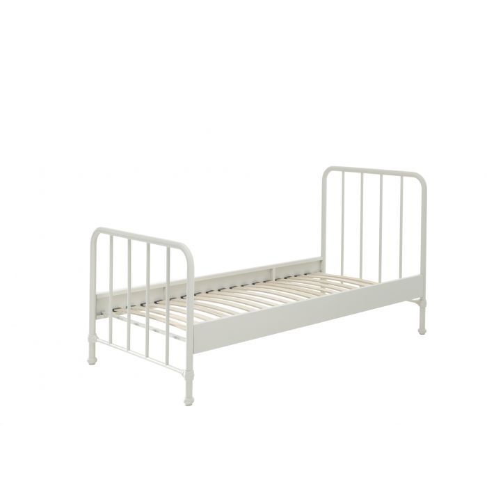 The BRONXX bed is a metal bed measuring 90x200 cm. The finish in matte white gives the industrial design an extra boost. The slatted base is included.