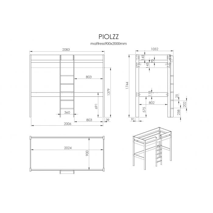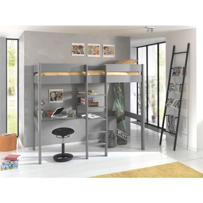 bed and has 3 shelves. Under the bed there is a desk that can be mounted on