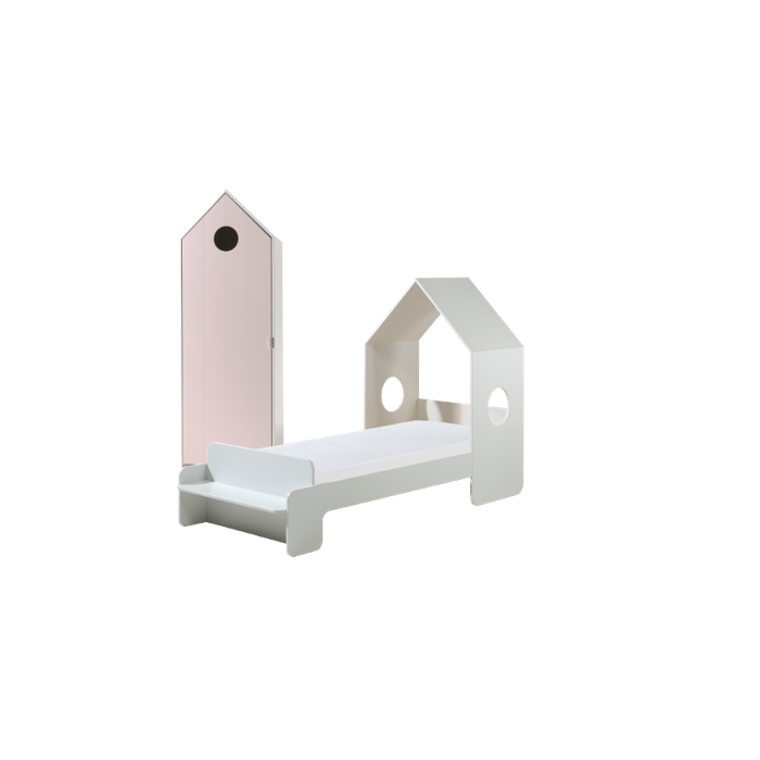 The CASAMI housebed (90x200) with a litte roof and cut out windows suits in every interior. The little bench at the and of the bed is perfect to sit or to display books and toys. The beach house cupboard with a pink door has 3 shelves so there's plenty of storage space to keep your clothes folded our to display your books and toys.