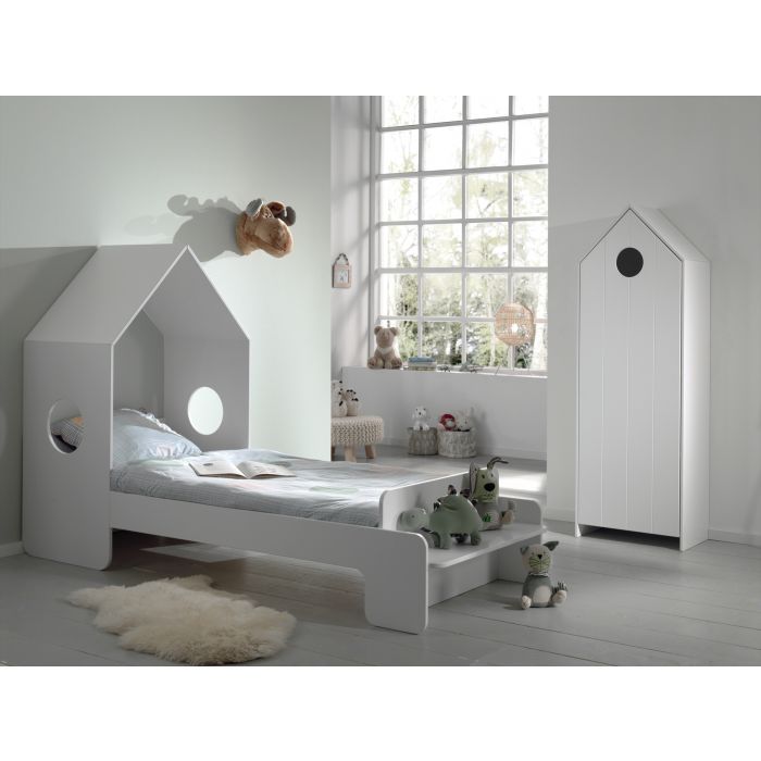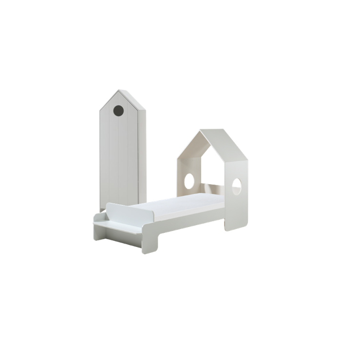 The CASAMI housebed (90x200) with a litte roof and cut out windows suits in every interior. The little bench at the and of the bed is perfect to sit or to display books and toys. The beach house cupboard with a white door has 3 shelves so there's plenty of storage space to keep your clothes folded our to display your books and toys.