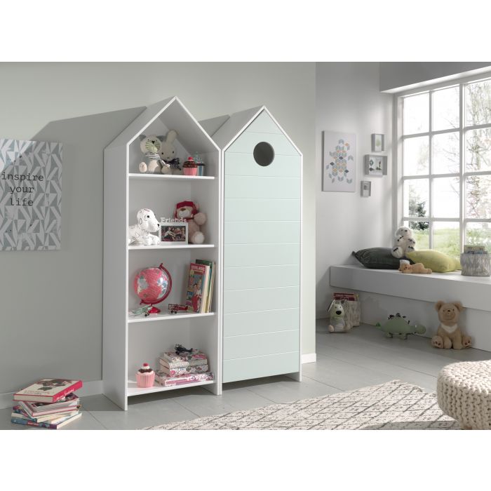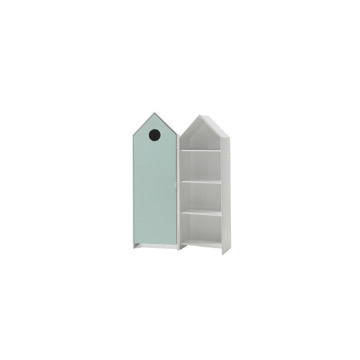 The CASAMI beach house cupboards will add colour to your kids bedroom. They are also compatible with other items from our collections. The closet with a door in mint green has 3 shelves and 1 hanging rail. The open closet in white has also 3 shelves. There's plenty of storage space to keep your clothes folded our to display your books and toys.