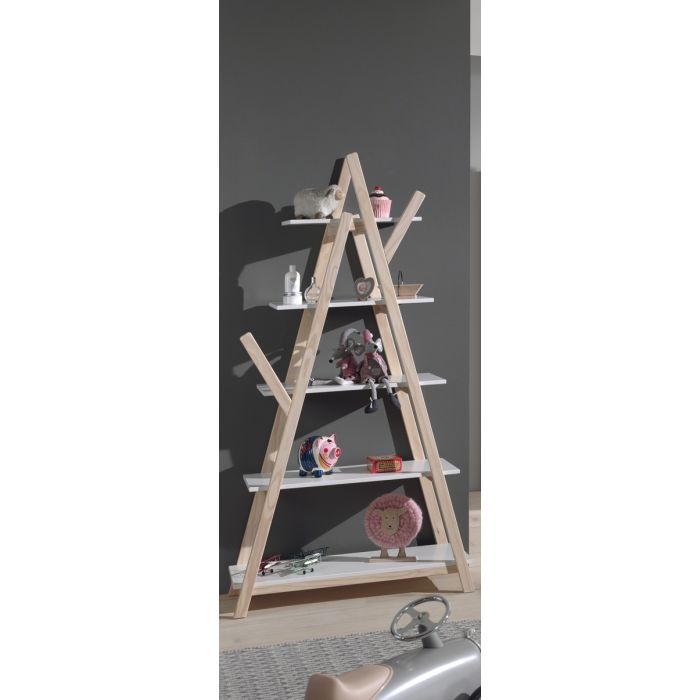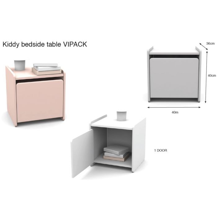 The KIDDY single bed (90x200) in white is made out of MDF with solid pine feet, which gives it a Scandinavian look. This bed with a simple yet modern design fits perfectly in every kids room. The matching bedside table with 1 door is the perfect finishing touch. The 2 door wardrobe is also made out of white lacquered MDF with a shelf in solid pine. This wardrobe with contemporary design has 2 doors and 2 drawers so there's plenty of storage space. The desk has a large desktop, 2 open compartiments en 2 little drawers so you can easily organise your stuff. The tipi shaped bookcase will bright up every room with it's simple yet funky design. There's lots of space to display all your favourite books and toys.
