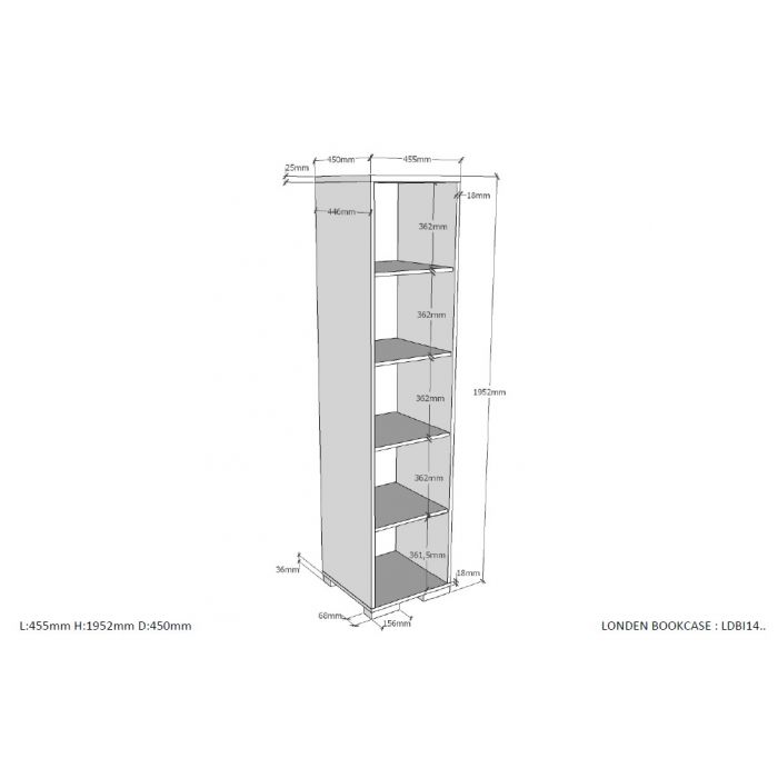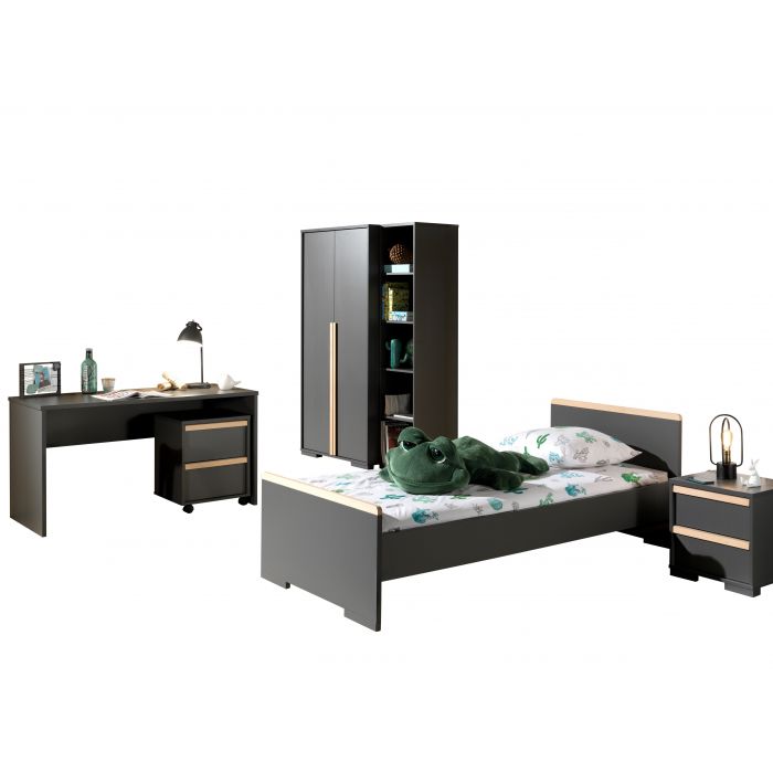 The LONDON bed (90x200) in anthracite has a Scandinavian look in combination with the solid pine. The nightstand in white has 2 drawers with soft-close system. The 2 door wardrobe consist of 2 doors with 2 shelves and 1 hanging rail. The desk has a spacious worktop and the matching trolley can be used for extra storage. The bookcase is divided in 5 compartments by 4 shelfs and perfect to organise your school books or to display your favourite toys. The perfect stylish addition for every children's or young adult's room.