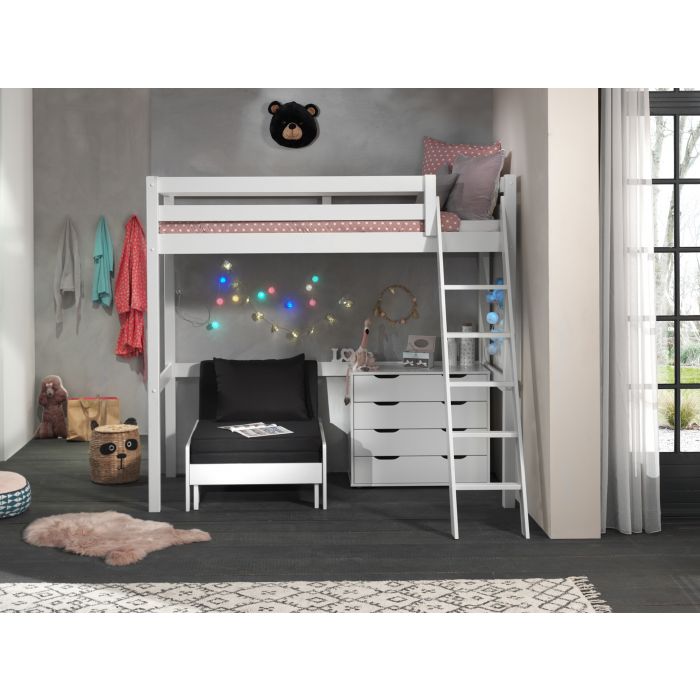 This PINO combination consists of the white PINO mezzanine 90 x 200 cm, chest