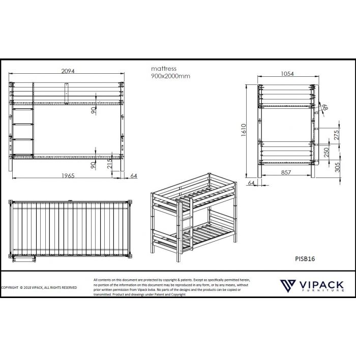bunkbed with a height of 160 cm and 2 storage drawers.