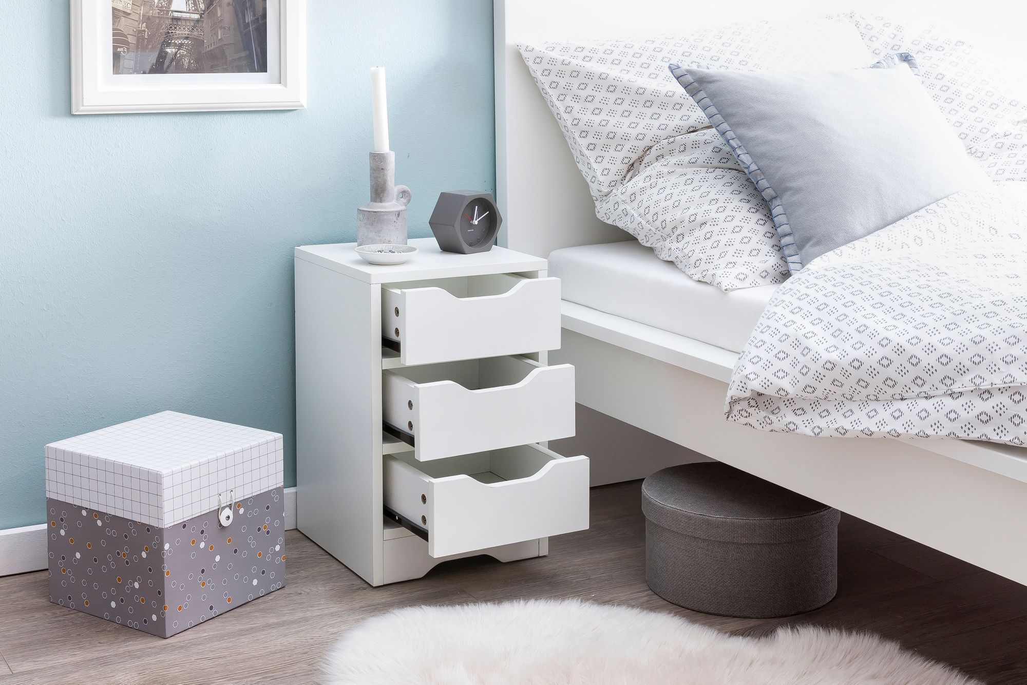 Informace o výrobku "Noční stolek bílý mat 31x49x31 cm | 3 zásuvky | Moderní a funkční noční stolek"