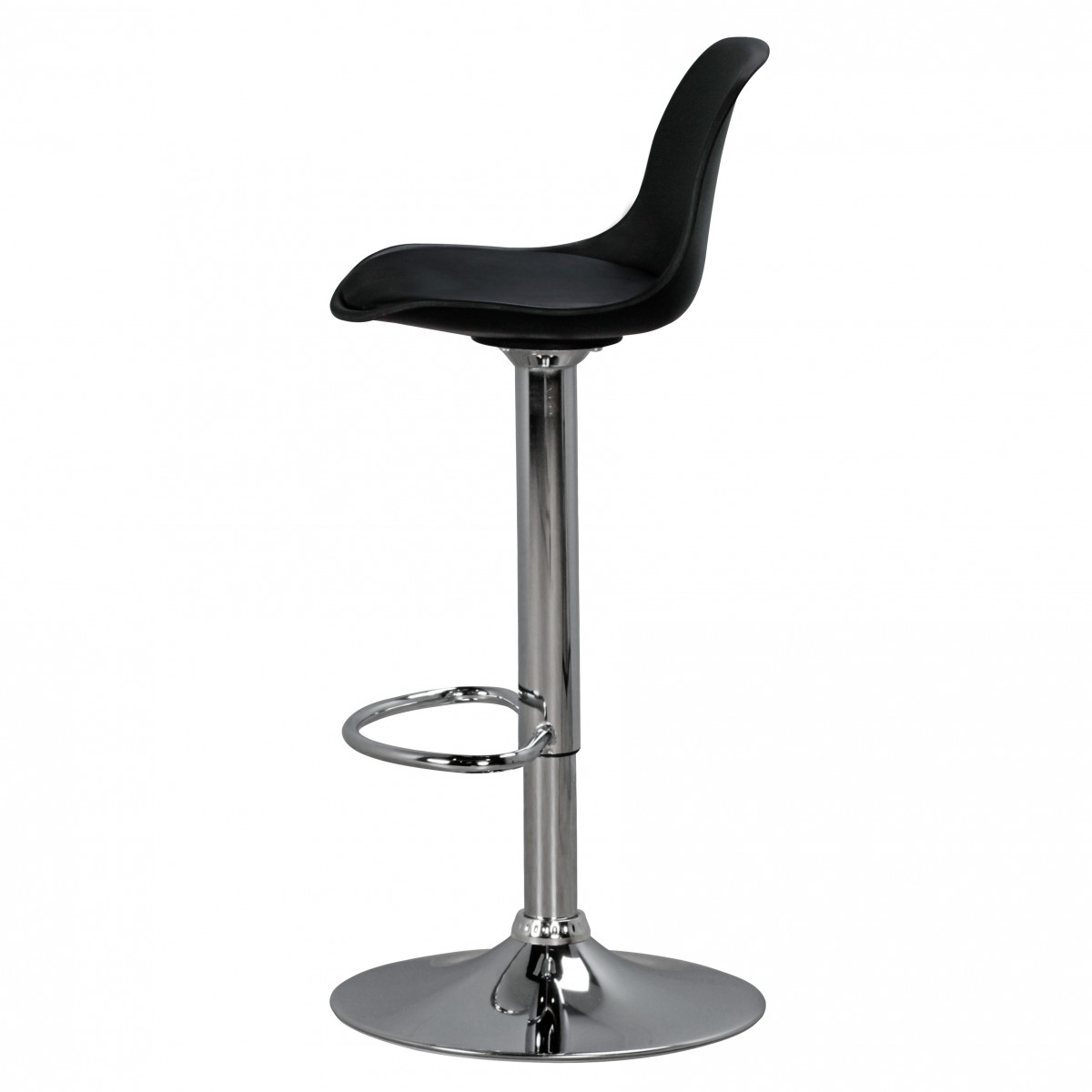 Barová stolička KORSIKA nabízí elegantní design a optimální funkčnost, ideální do domácnosti nebo baru. Černý povrch sedáku z umělé kůže poskytuje pohodlí a stylový vzhled, zatímco chromovaný kovový rám zaručuje stabilitu a odolnost.