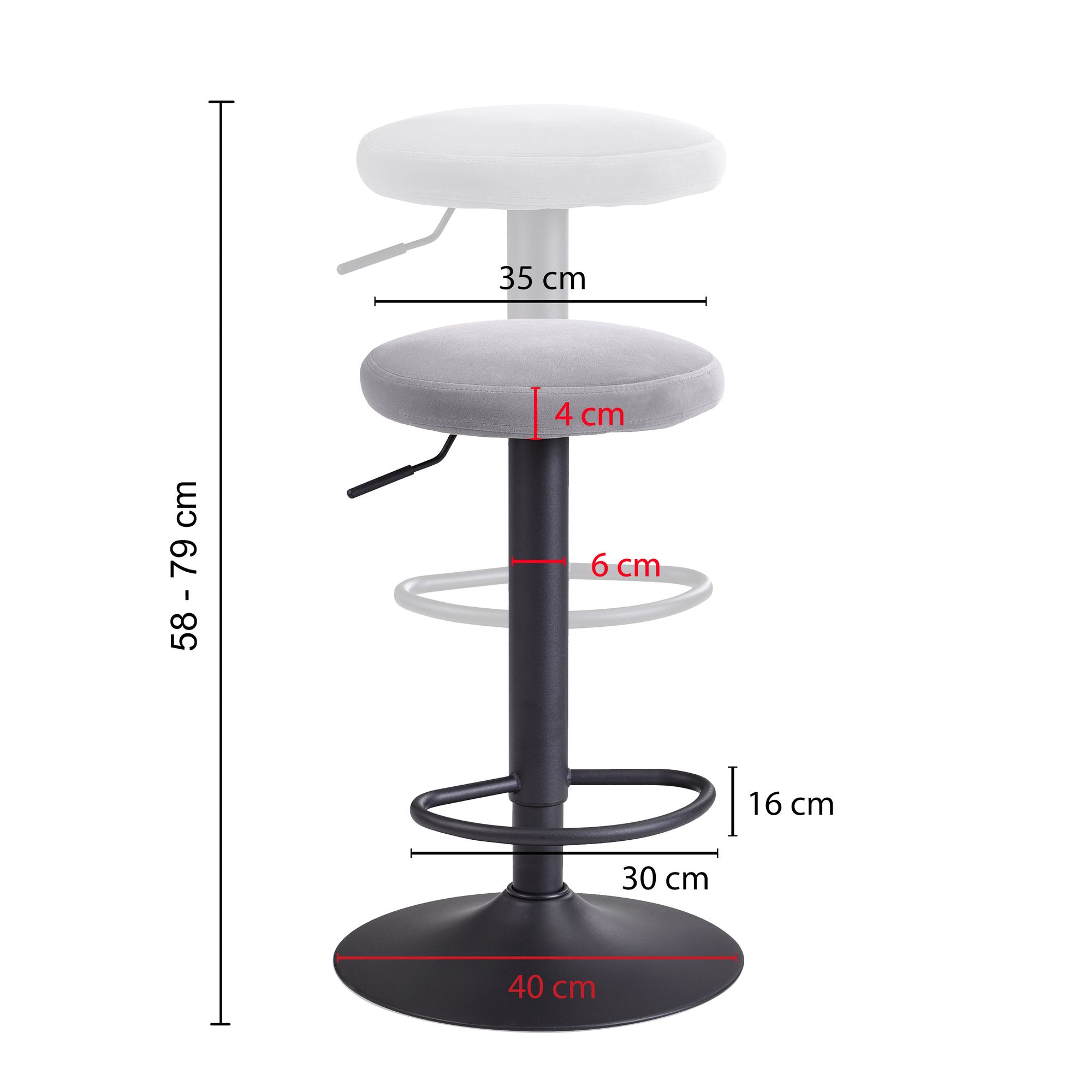 Informace o výrobku "Barová Židle Samet Tmavě Šedá | Bez opěradla | 58-79 cm | Polyesterová tkanina a kov"