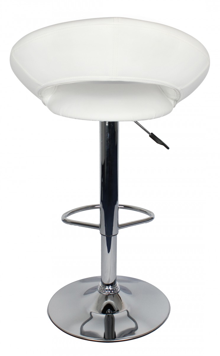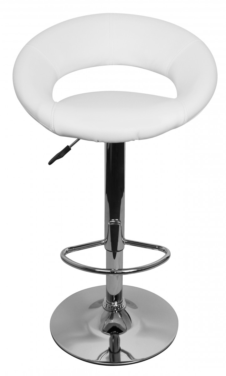 Výškově nastavitelná barová židle | Bílé umělé kůže | Bez opěradla, chromovaný rám 80-102 cm