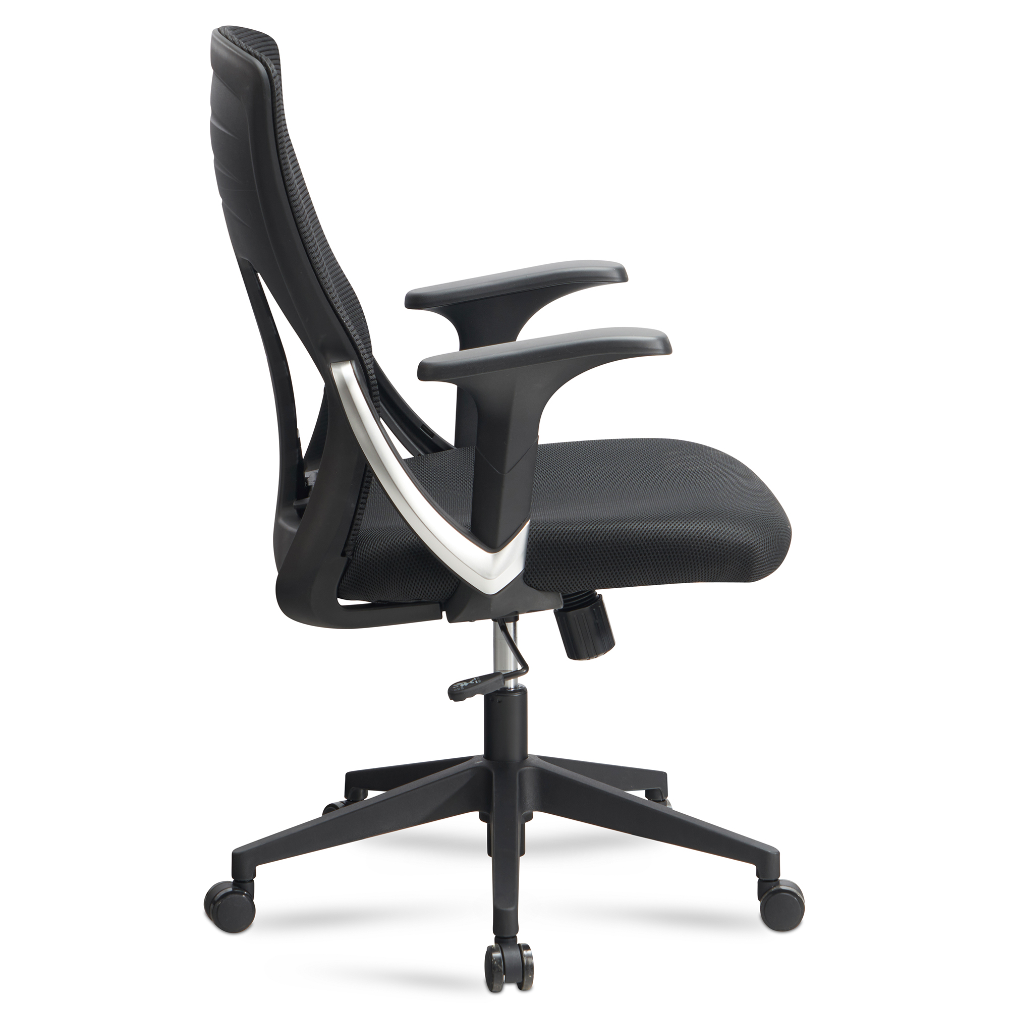 Kvalitní materiály: sedák a opěradlo z Mesh (100 % polyester), područky a základna z odolného plastu.