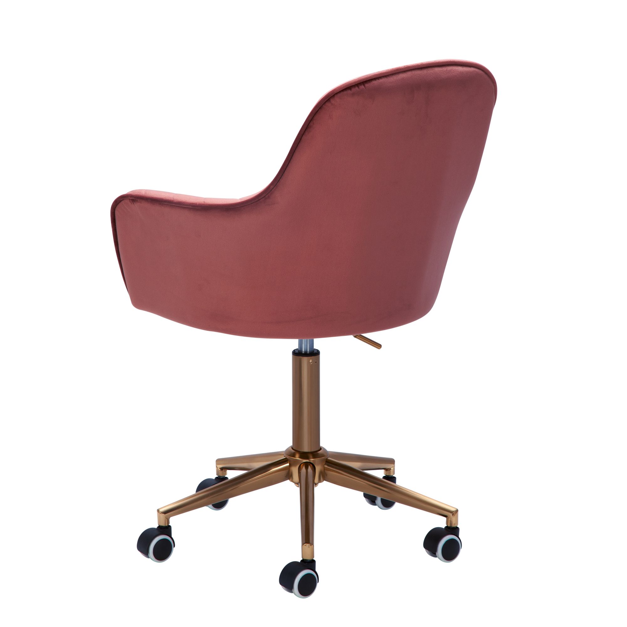 Přidejte do své kanceláře měkký a elegantní prvek s touto růžovou sametovou kancelářskou židlí. Ergonomicky tvarovaná skořepina zaručuje vysoký komfort a zlatý lakovaný železný podstavec stabilitu a styl. Kompaktní a praktická, výškově nastavitelná (43-63 cm), nosnost až 120 kg.
