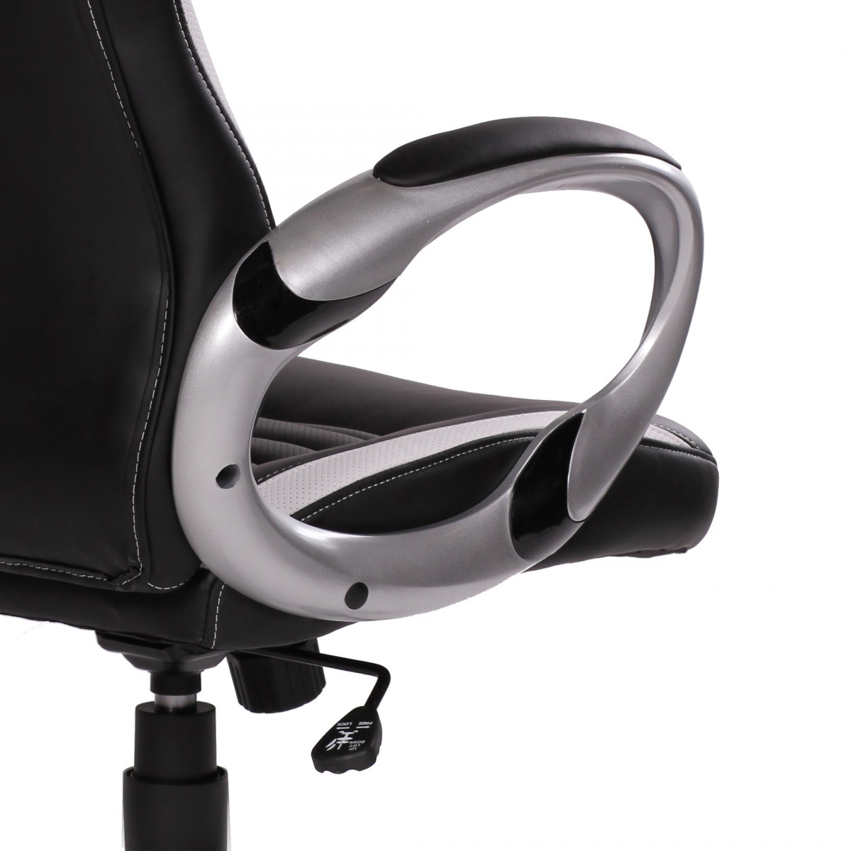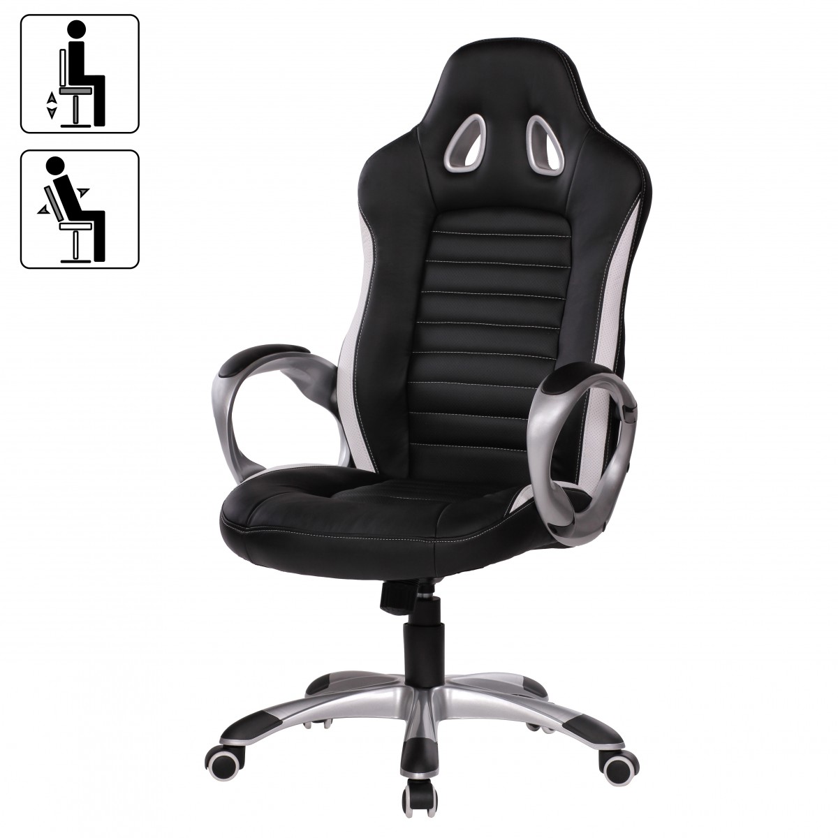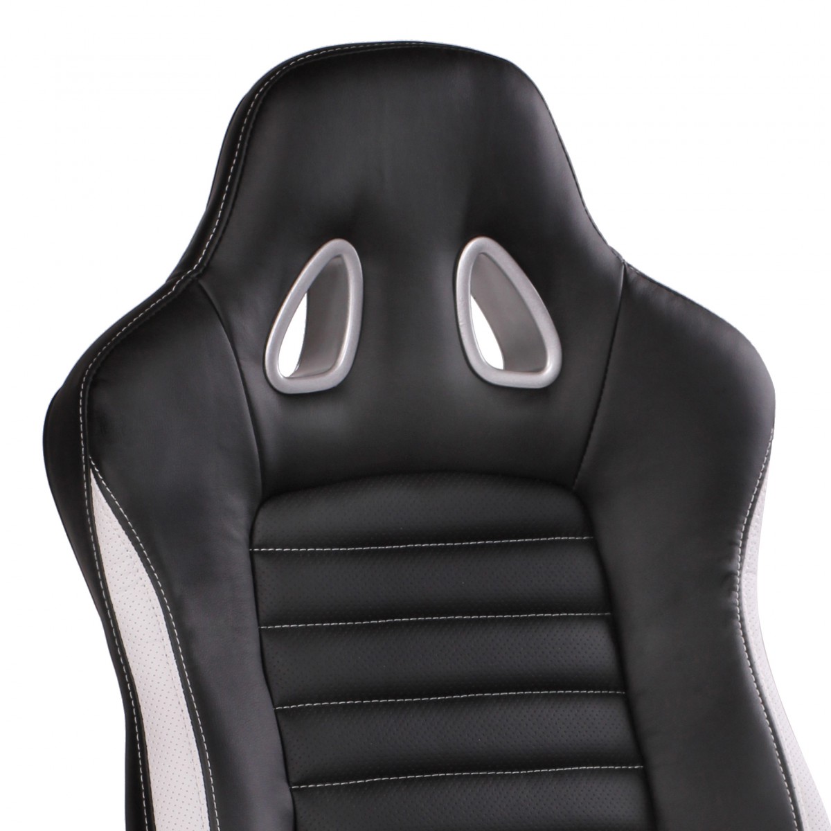 Kancelářská židle SPA v moderním a pohodlném designu s černým potahem z umělé kůže s bílými detaily. Perforované sedadlo a opěradlo zajišťují výbornou prodyšnost, ideální pro dlouhodobé používání zejména v létě.