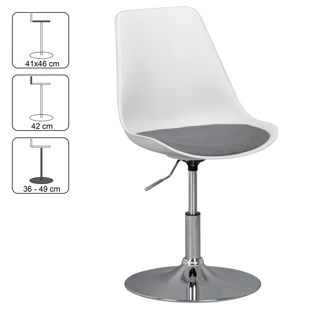 - Barva: šedá sedací plocha, bílá skořepina, chromovaná noha
