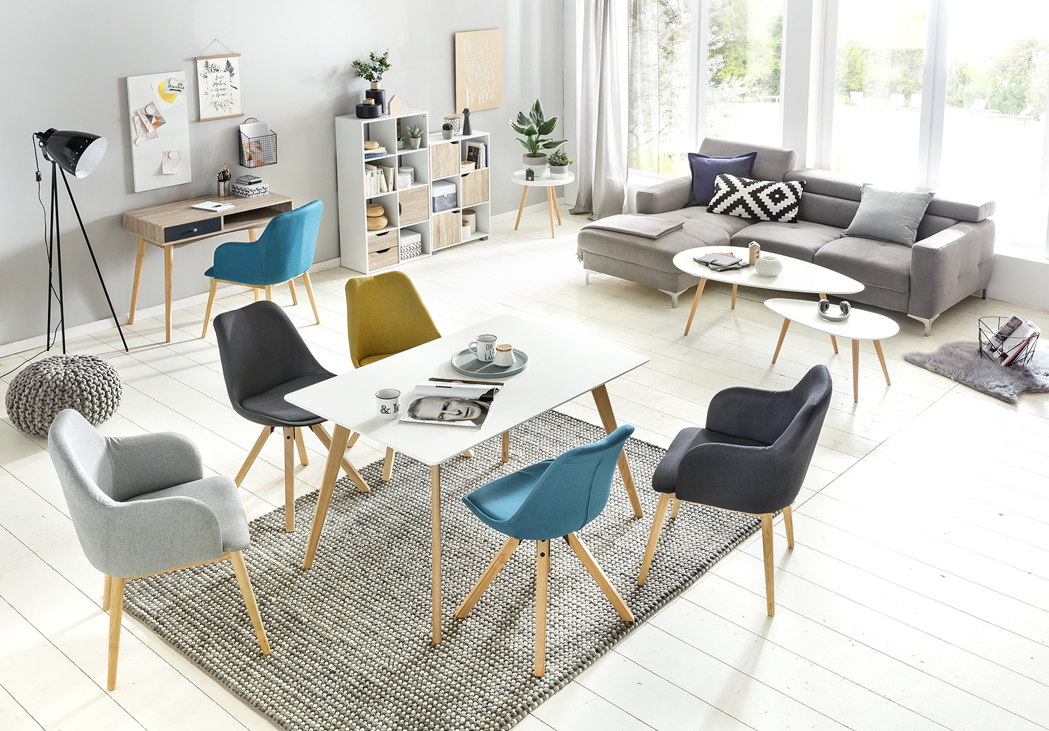 Nožky z masivního dřeva Hevea s dubovou úpravou zajišťují perfektní stabilitu a elegantní vzhled, filcové kluzáky chrání podlahu.