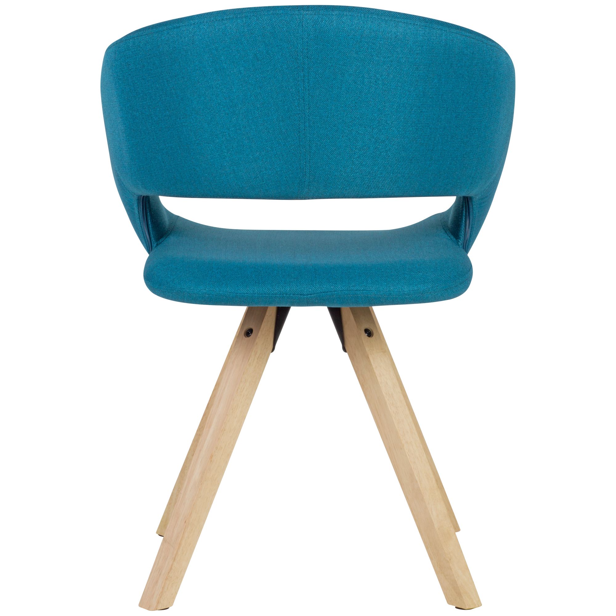 Objevte tento retro design jídelní židle s prohnutou, čalouněnou sedací skořepinou v petrolejové látce. Nohy z masivního dřeva hevea zajišťují stabilní oporu a perfektně doplňují vintage vzhled.