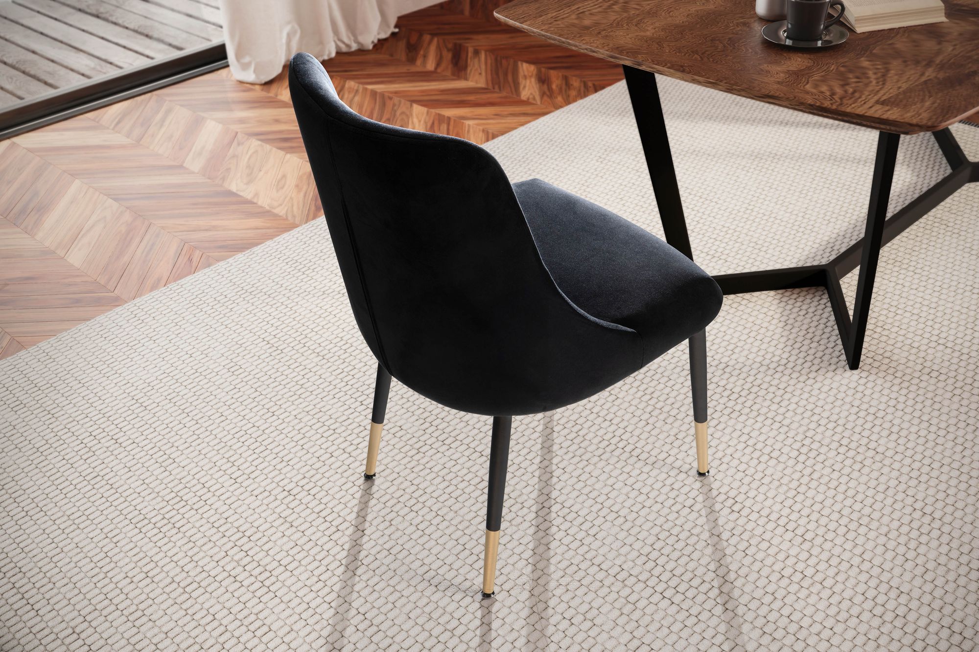 Užijte si pohodlné a elegantní sezení s touto jídelní židlí z černého sametu. Moderní černé nohy zajišťují stabilitu a rafinovaný styl. Opěradlo obsahuje integrovaný polštář pro delší pohodlí.