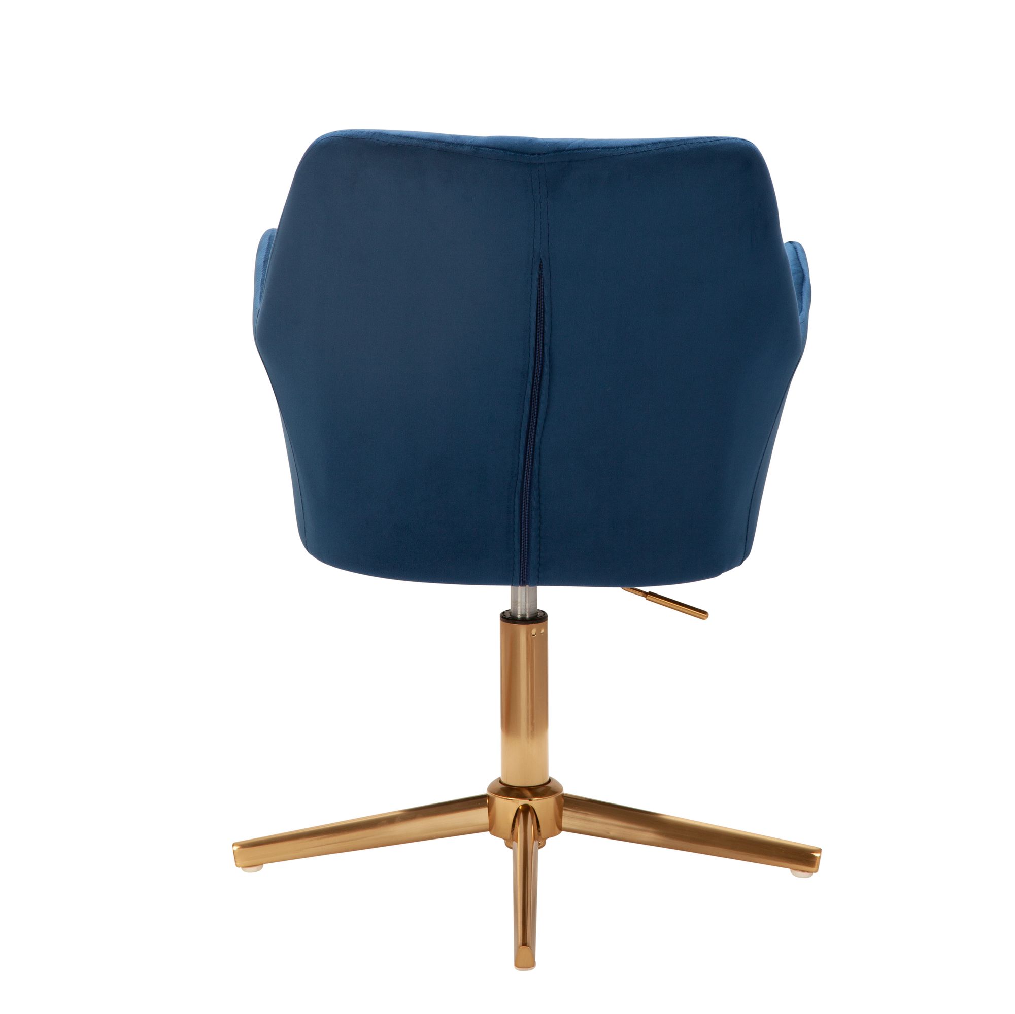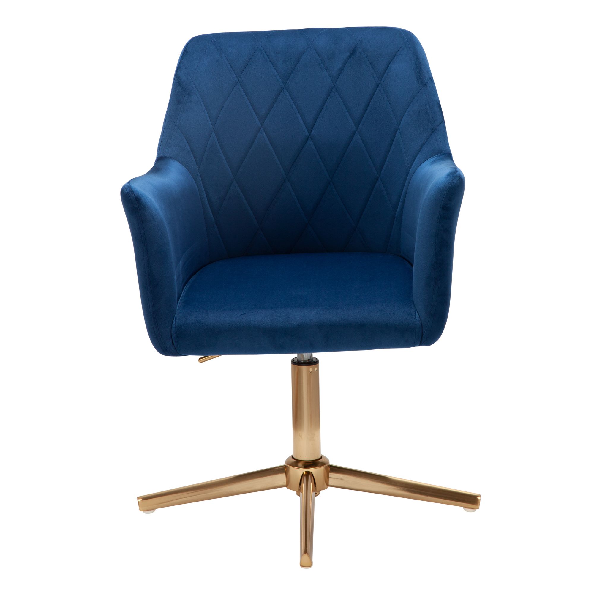 Kancelářská židle tmavě modrý samet | Zlatý kovový rám | Nastavitelná výška 80-97 cm
