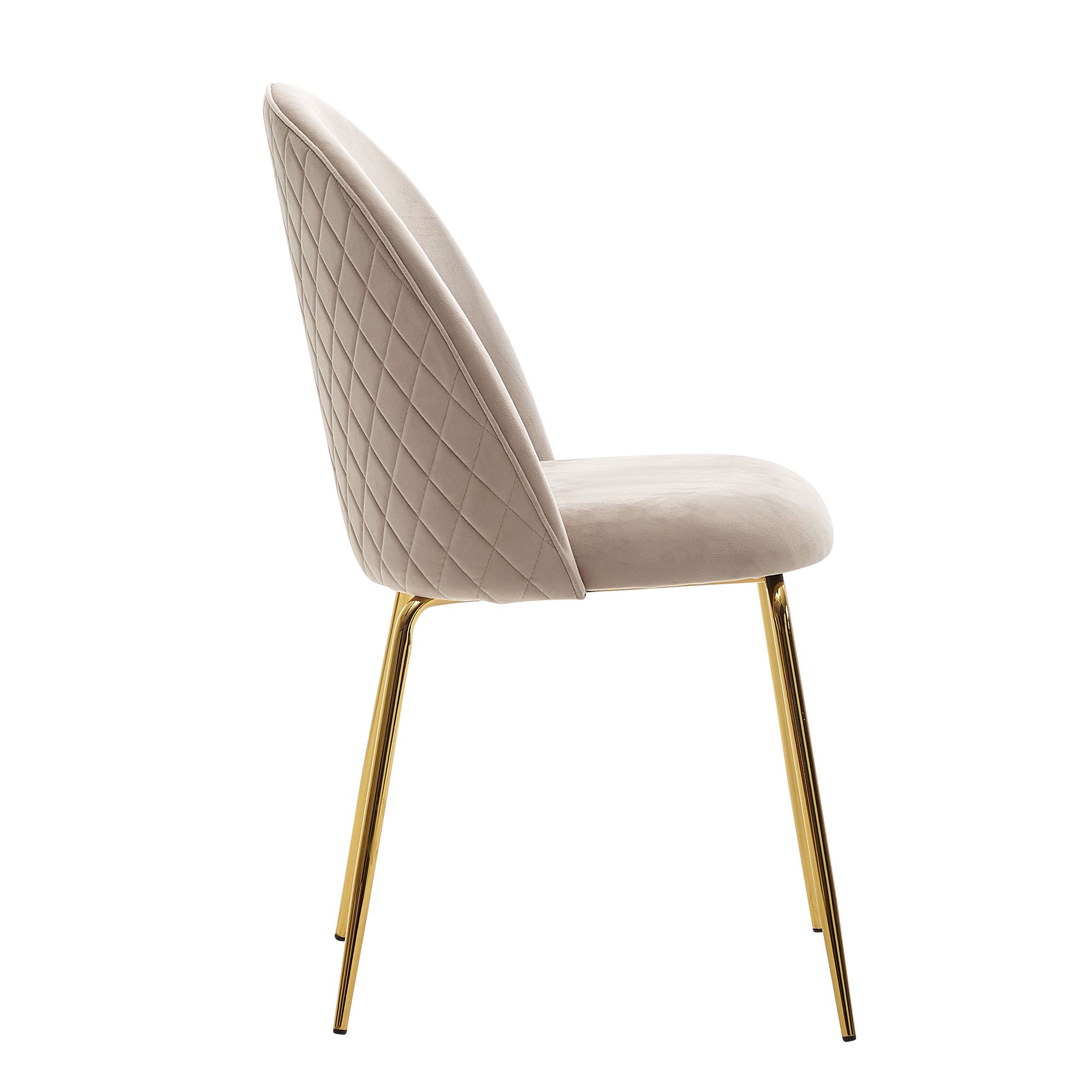 Skandinávská sametová jídelní židle béžová látka | Sada 2 ks | Zlaté kovové nohy | 53x50x86 cm