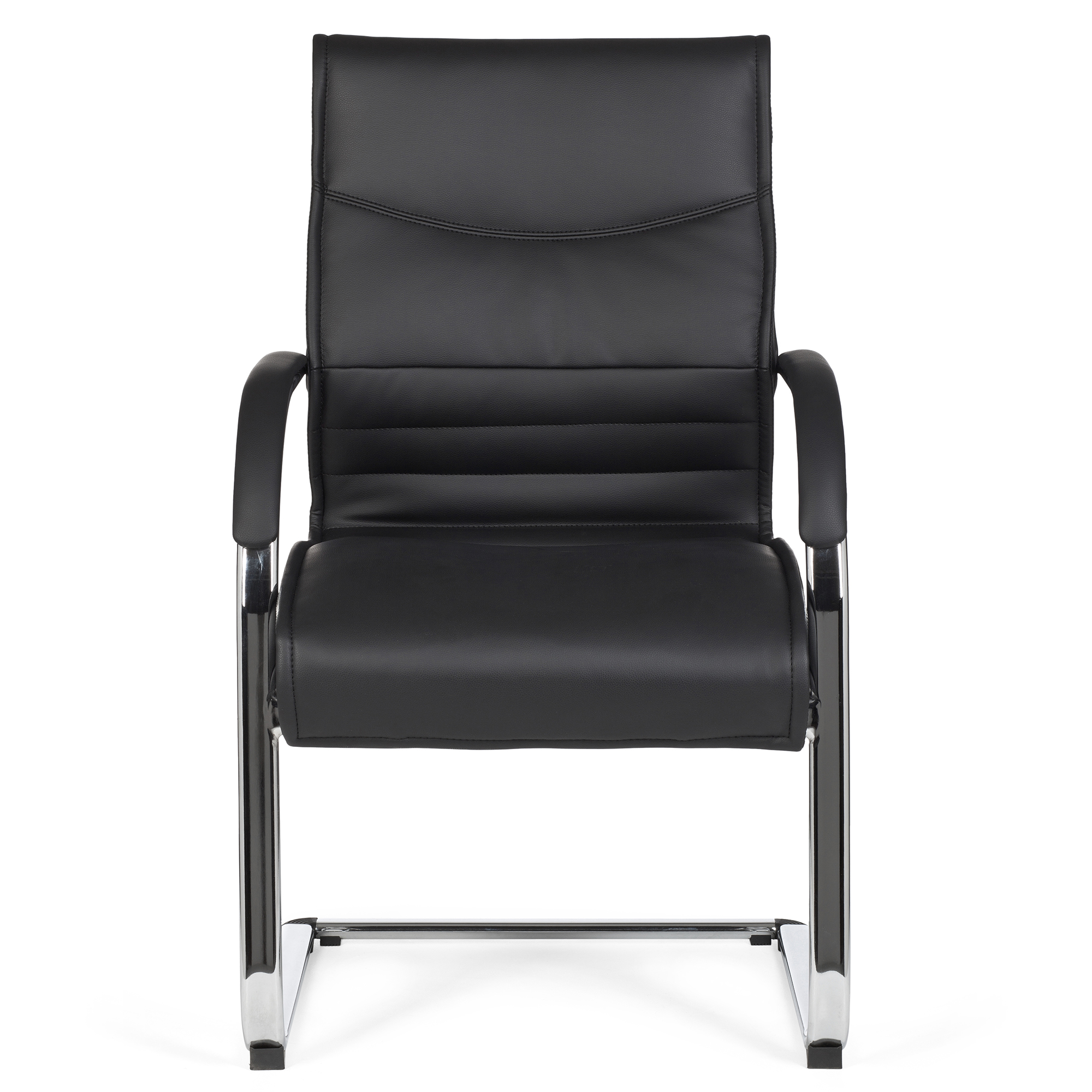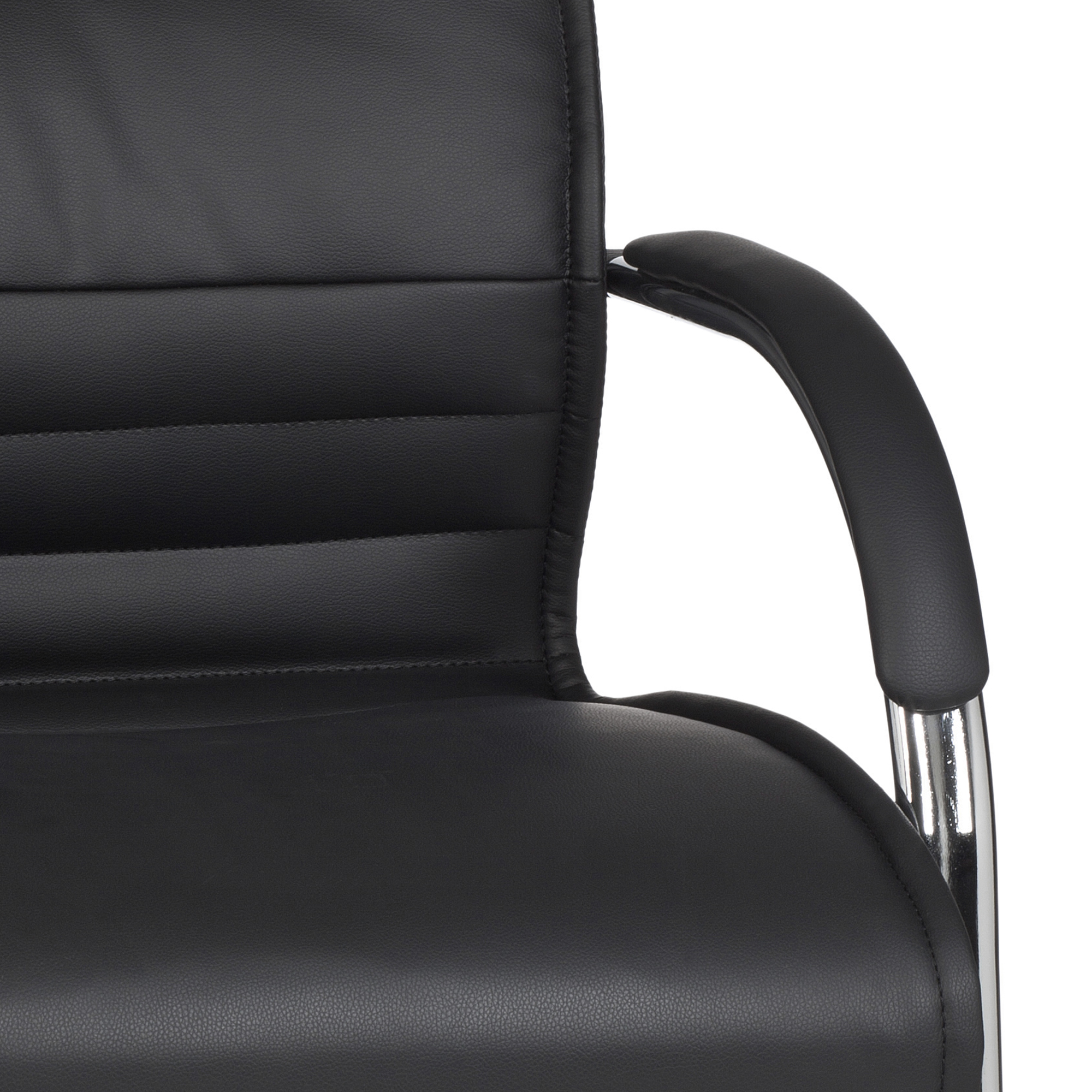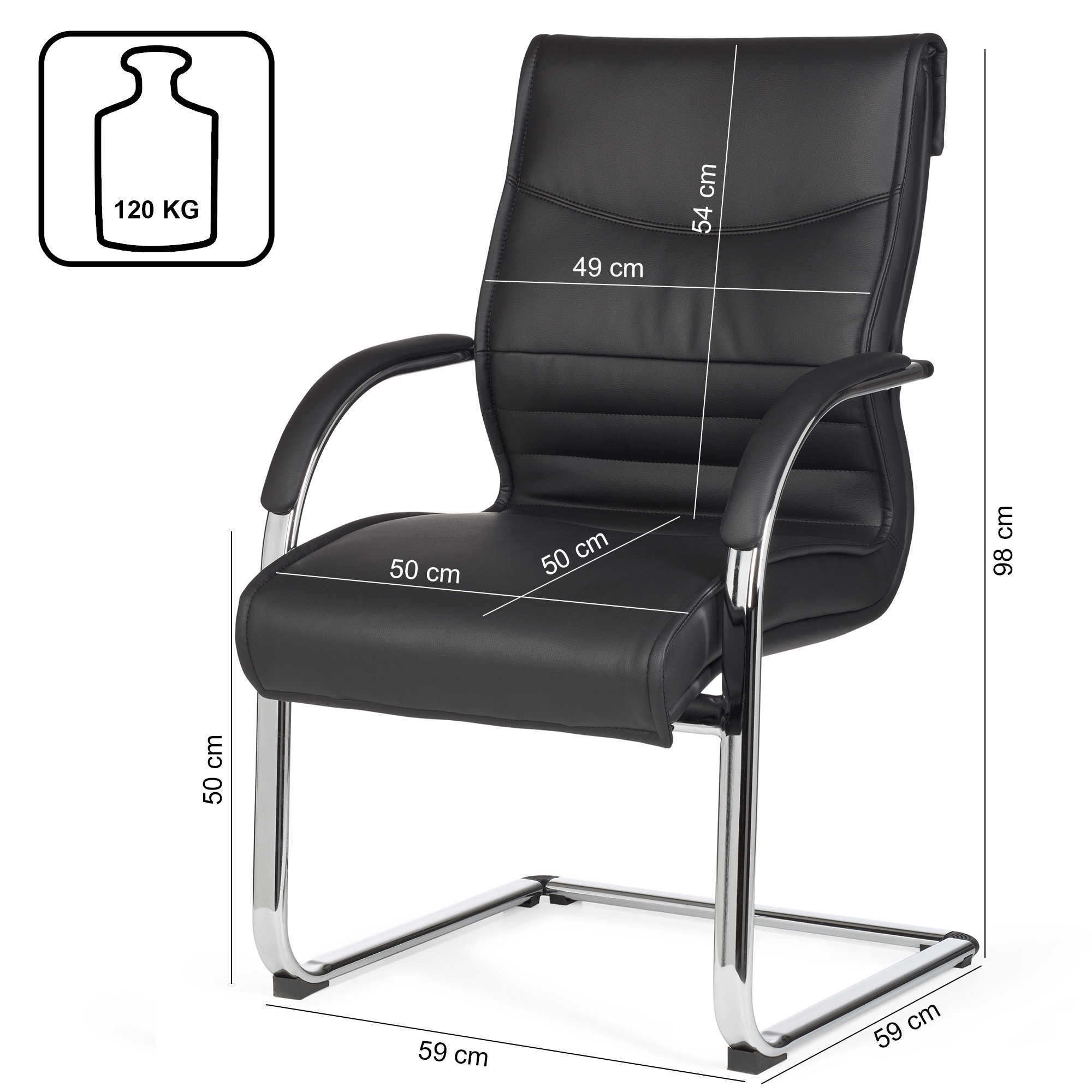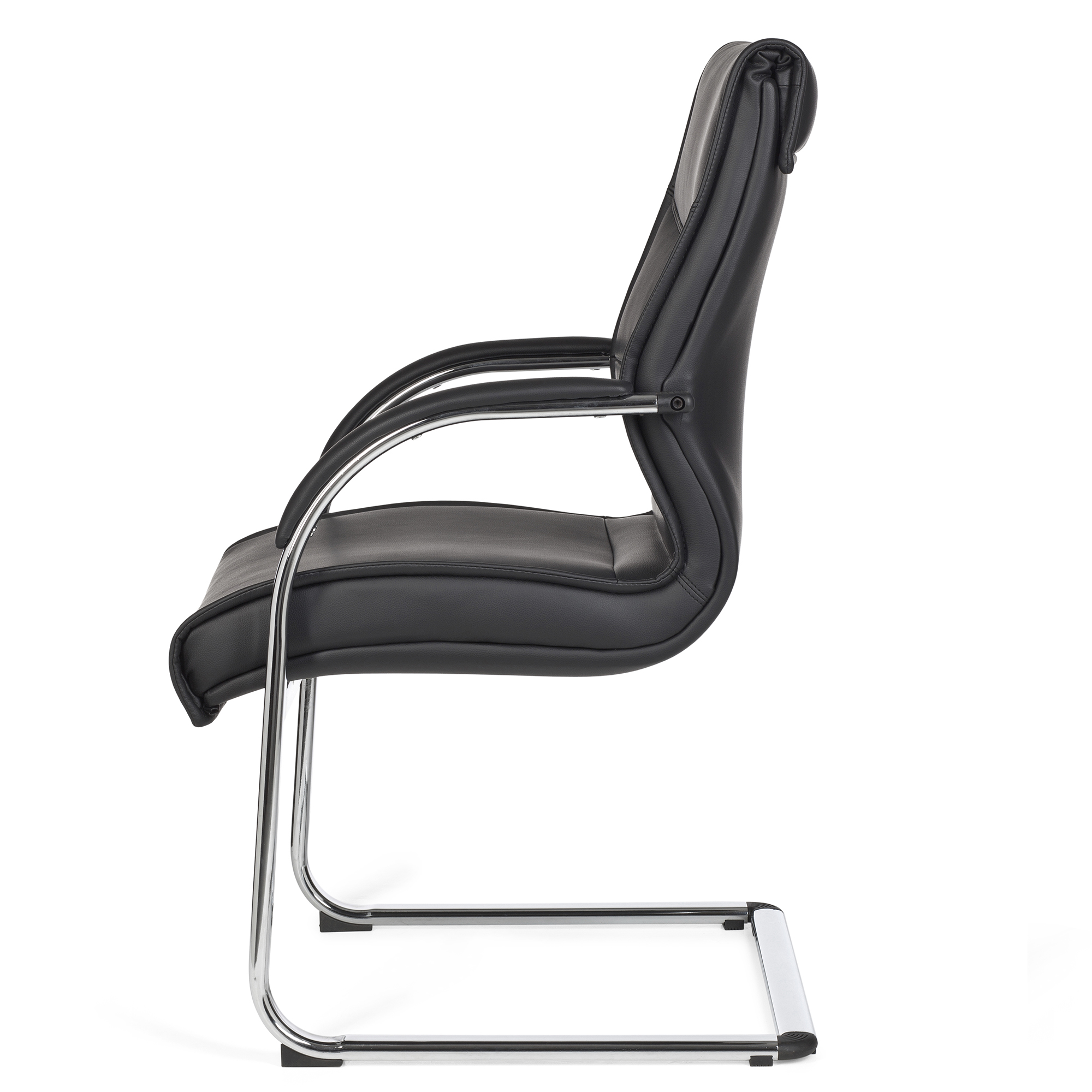Tato freischwinger židle pro návštěvy nabízí pohodlí díky bohatému a detailnímu polstrování sedací plochy a opěradla. Elegantní chromovaný kovový rám doplňují chromované područky s měkkým čalouněním v černé kožence.