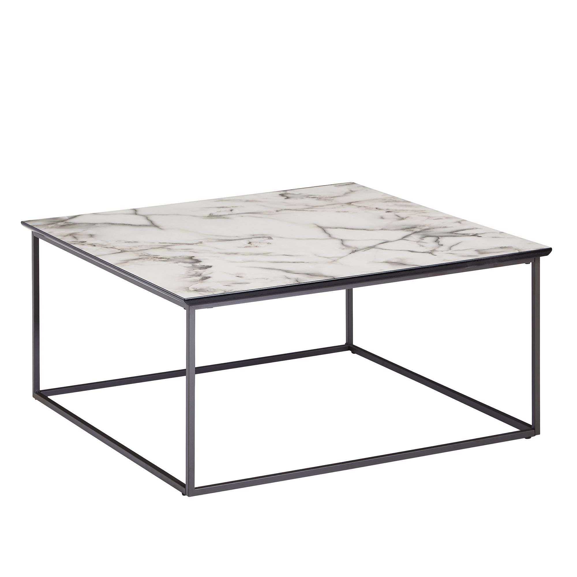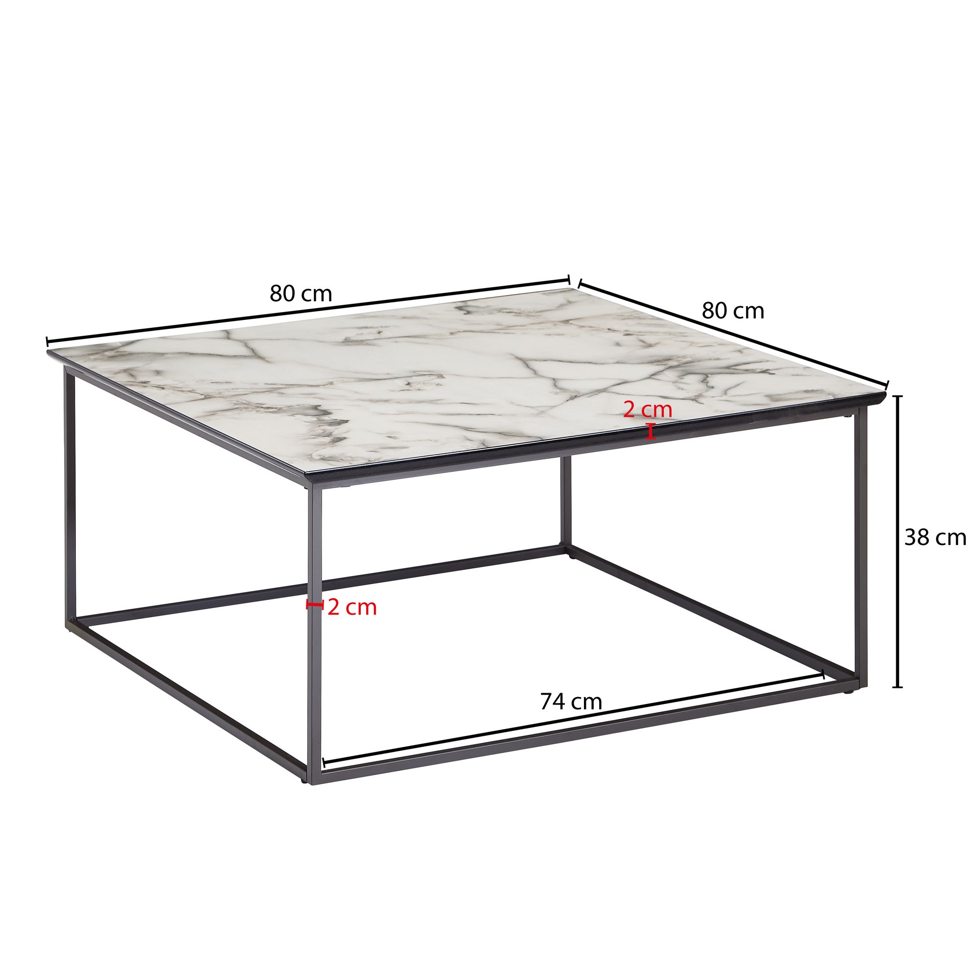 Informace o výrobku "Čtvercový konferenční stolek 80x38x80 cm | Bílý mramorový vzhled desky | Černý kovový rám"