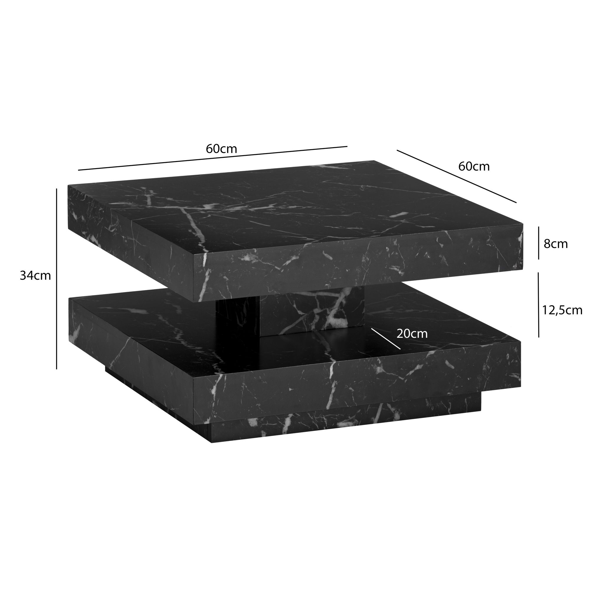 Čtvercový konferenční stolek z foliovaného MDF | Černý mramorový efekt | 60x60x34 cm