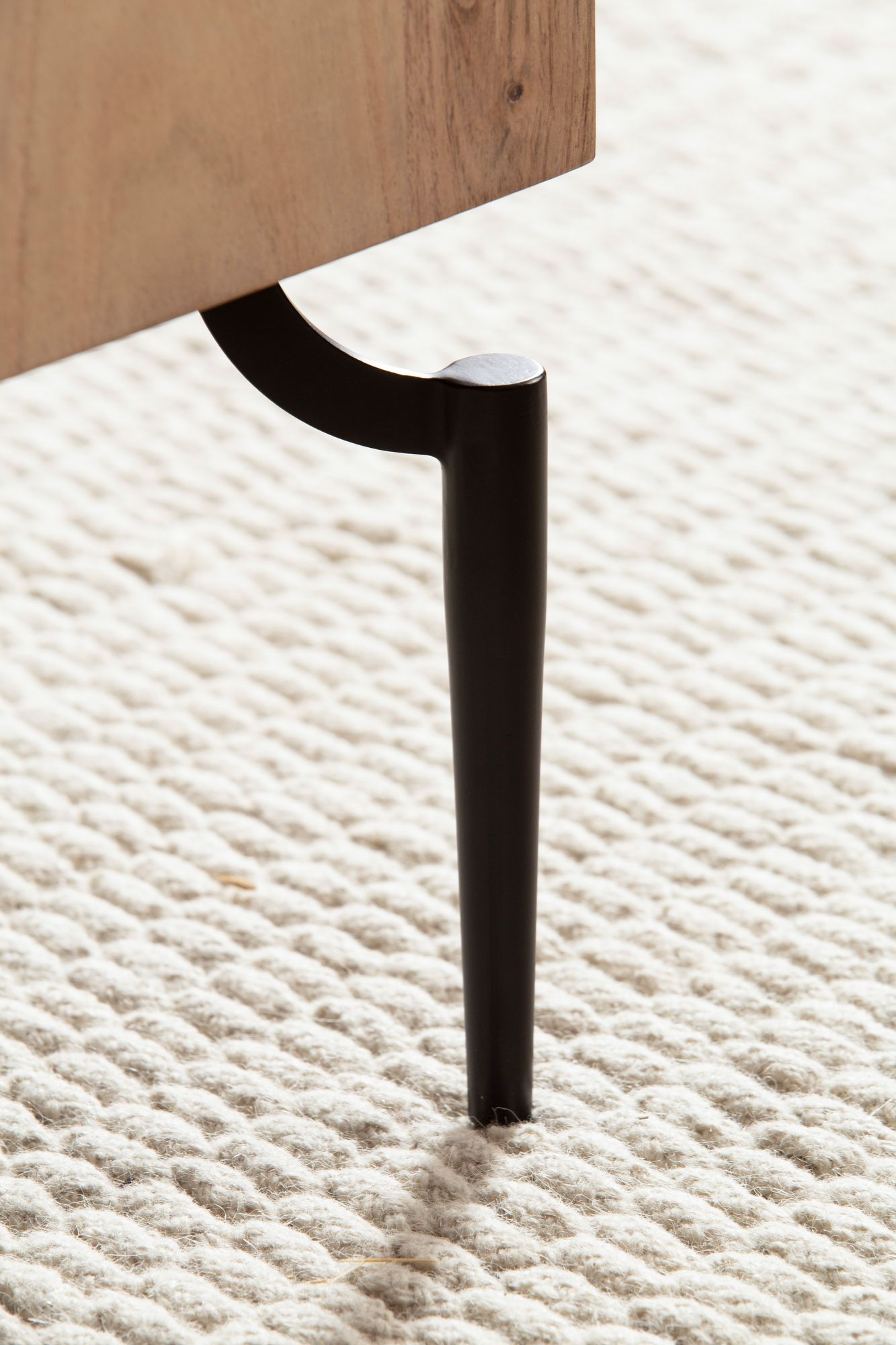 Robustní černé kovové nohy poskytují pevnou oporu a dlouhou životnost. Každý stůl je ručně vyrobený a díky tomu unikátní s přírodními odchylkami.