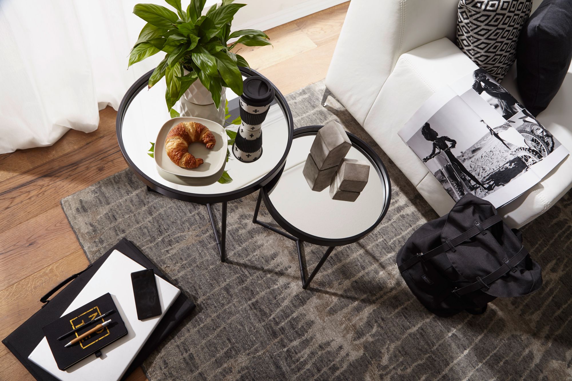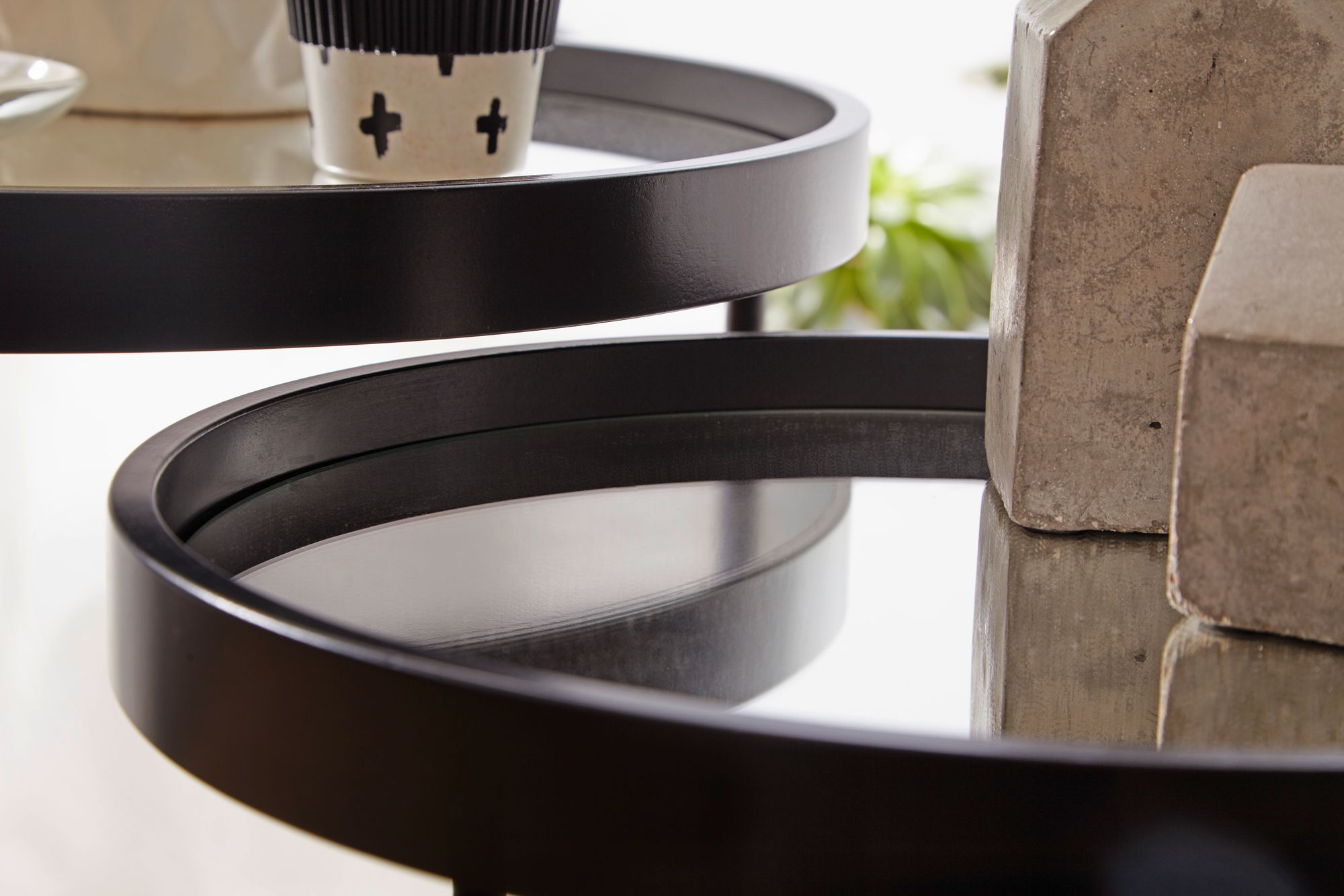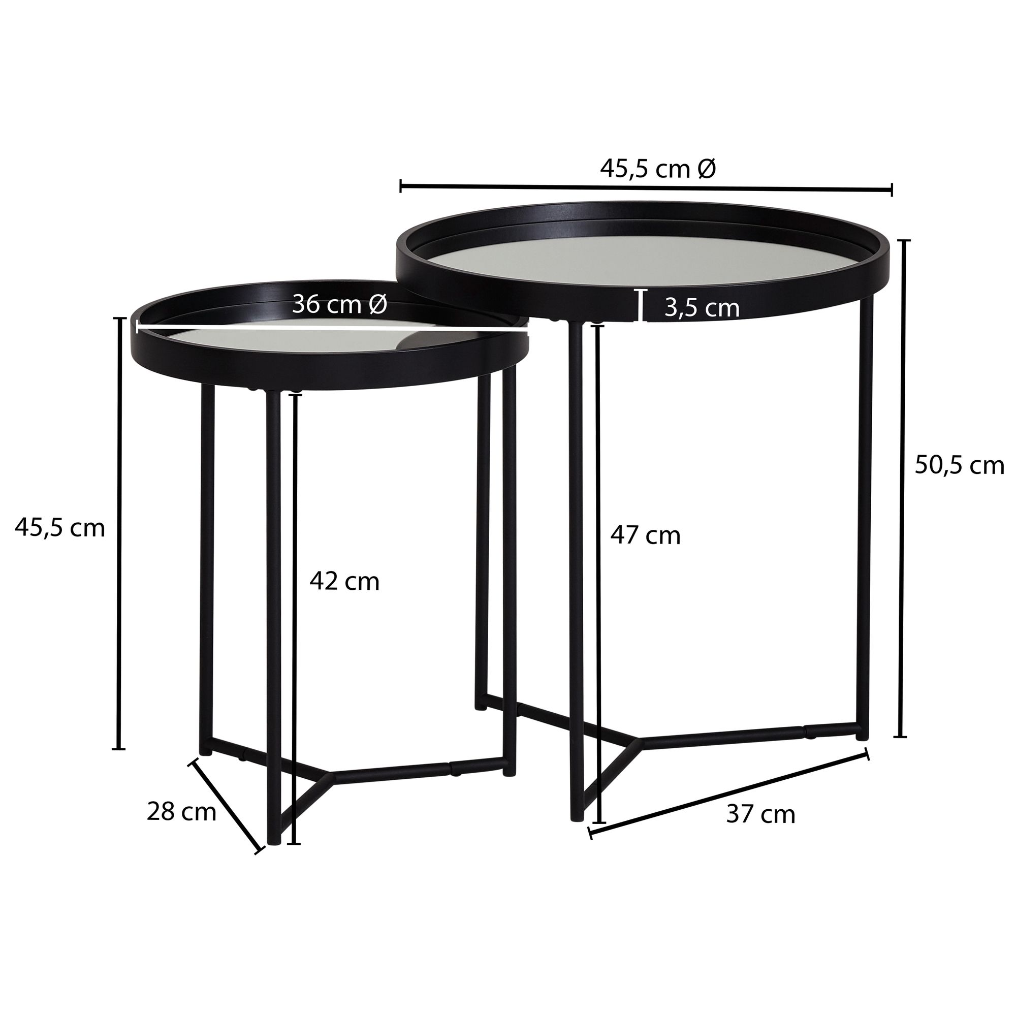 Informace o výrobku "Design odkládací stolky kulaté 2 ks | Černě lakovaný tulipánový dřevo a zrcadlové sklo | Ø 50/36 cm, Výška 50,5/45,5 cm"
