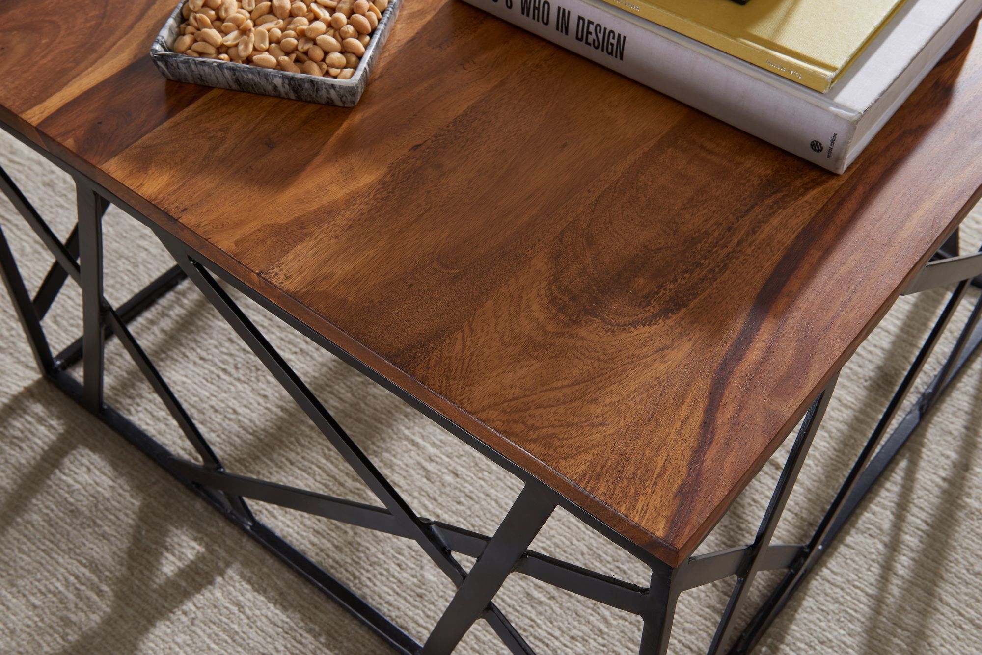 Konferenční stolek BAKAL Sheesham masiv kov hnědá/černá 60x35x60 cm | Průmyslový styl