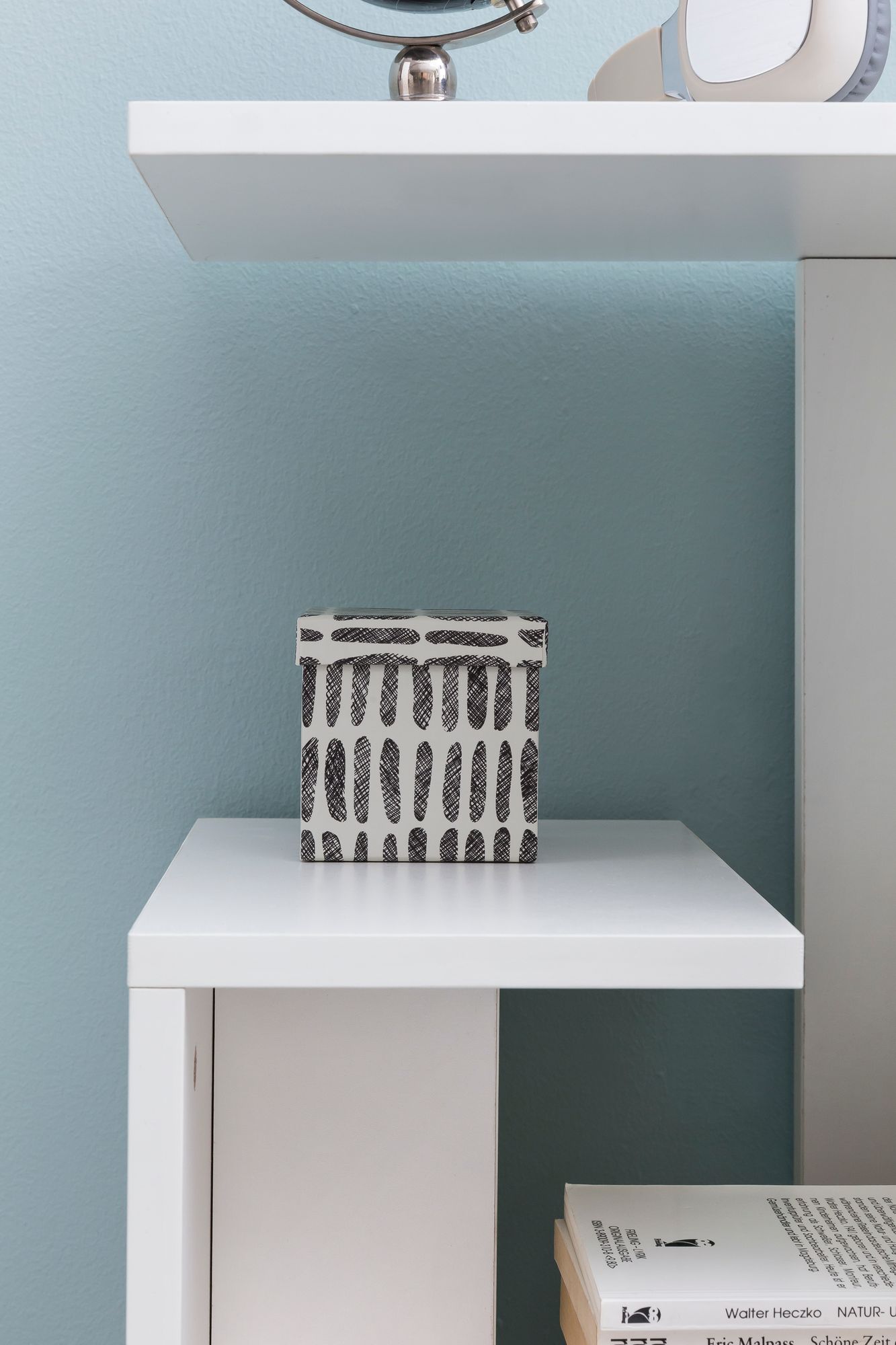 Rozměry jsou 35 cm šířky, 29,5 cm hloubky a 61 cm výšky. Vyroben z bíle laminované dřevotřísky s melaminovou vrstvou odolnou proti poškrábání a vodě.