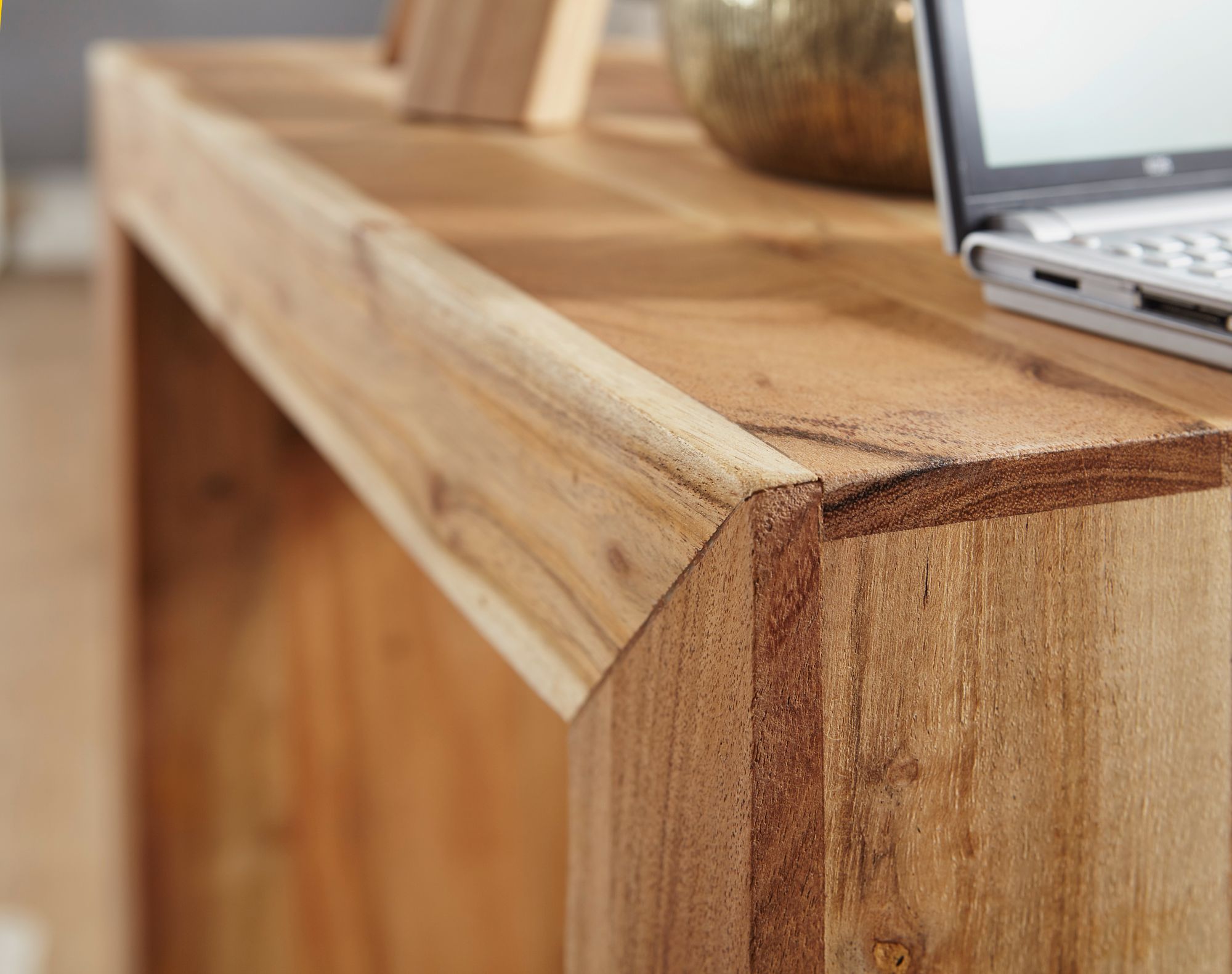 Konferenční stolek MUMBAI z masivního akáciového dřeva nabízí moderní design a funkčnost. Tmavý přírodní odstín dřeva a kompaktní rozměry jej činí ideálním jako doplňkový stolek do obývacího pokoje, zejména do menších prostor.