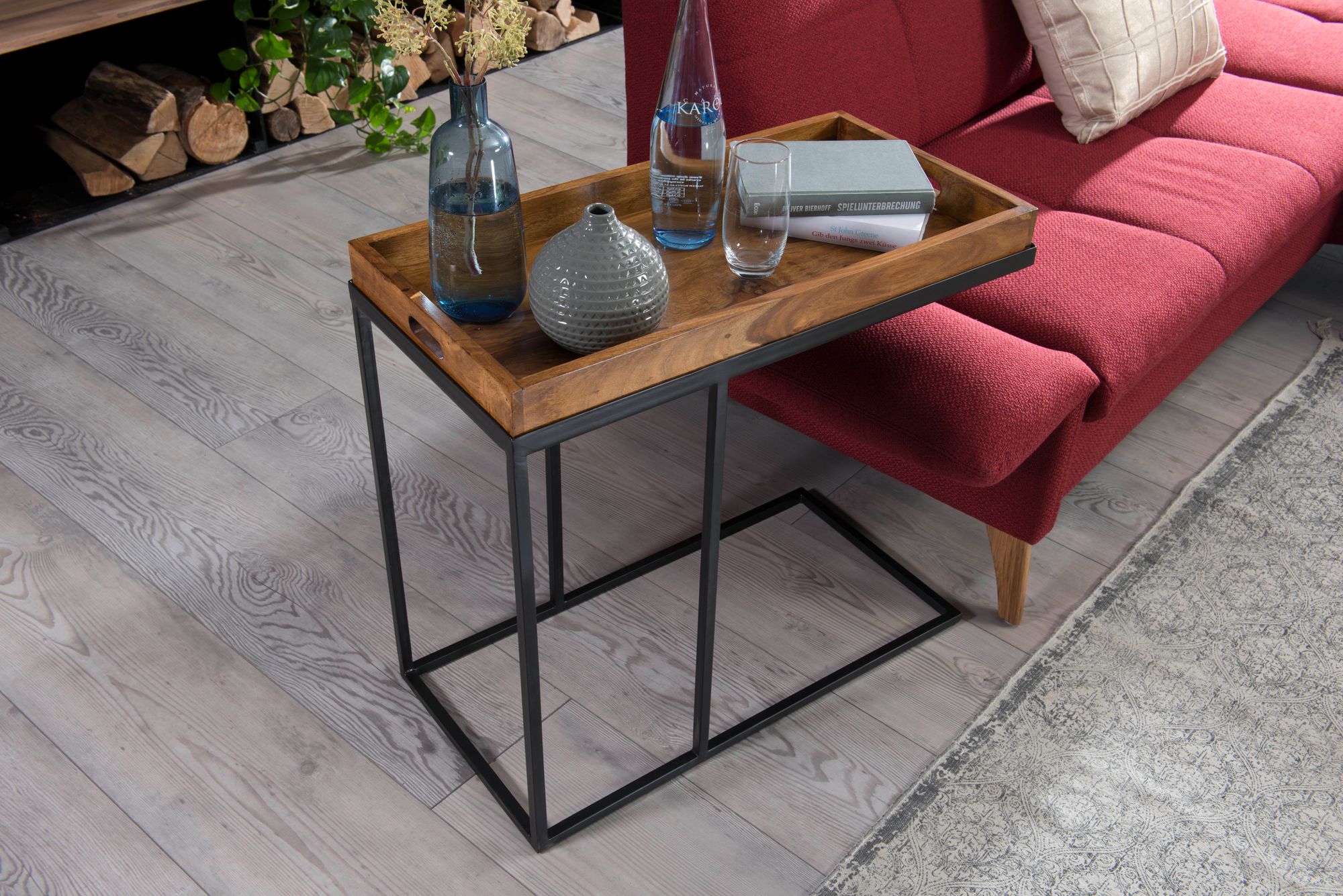 - Materiály: deska z masivního dřeva Sheesham, kovový rám
