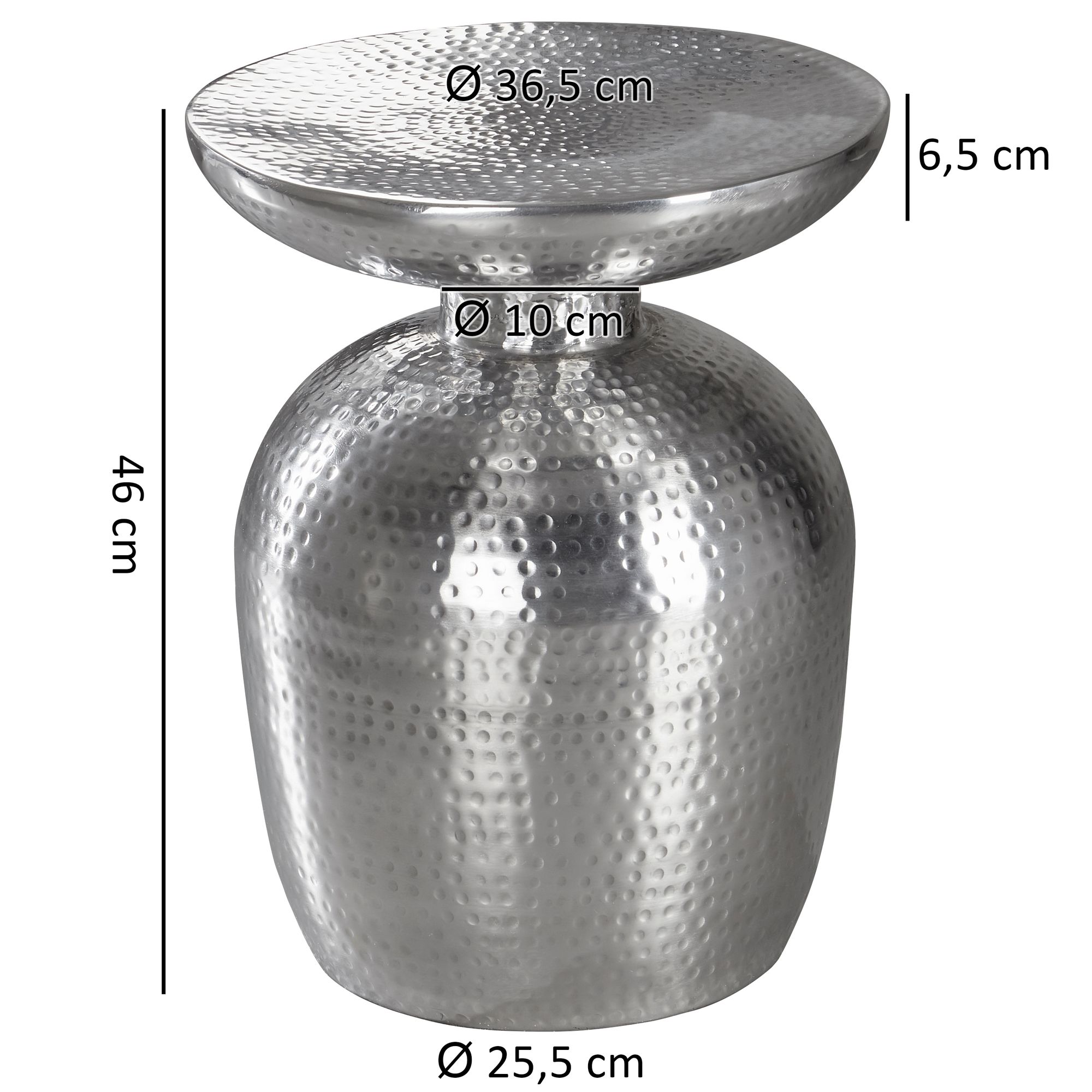 Informace o výrobku "Konferenční stolek stříbrný hliník 36,5x46x36,5 cm | Orientální kulatý design | Moderní dekorativní stolek"